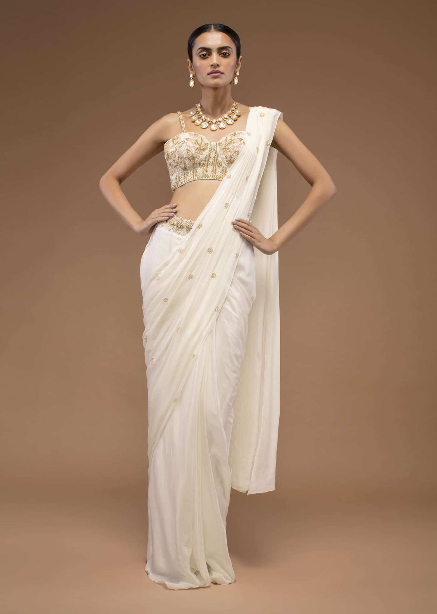 Cotton white ready to wear saree with a crop top set in cut dana embroidery. It is crafted in organza with a side zip closure. It has multicolor cut dana,... More Product Details