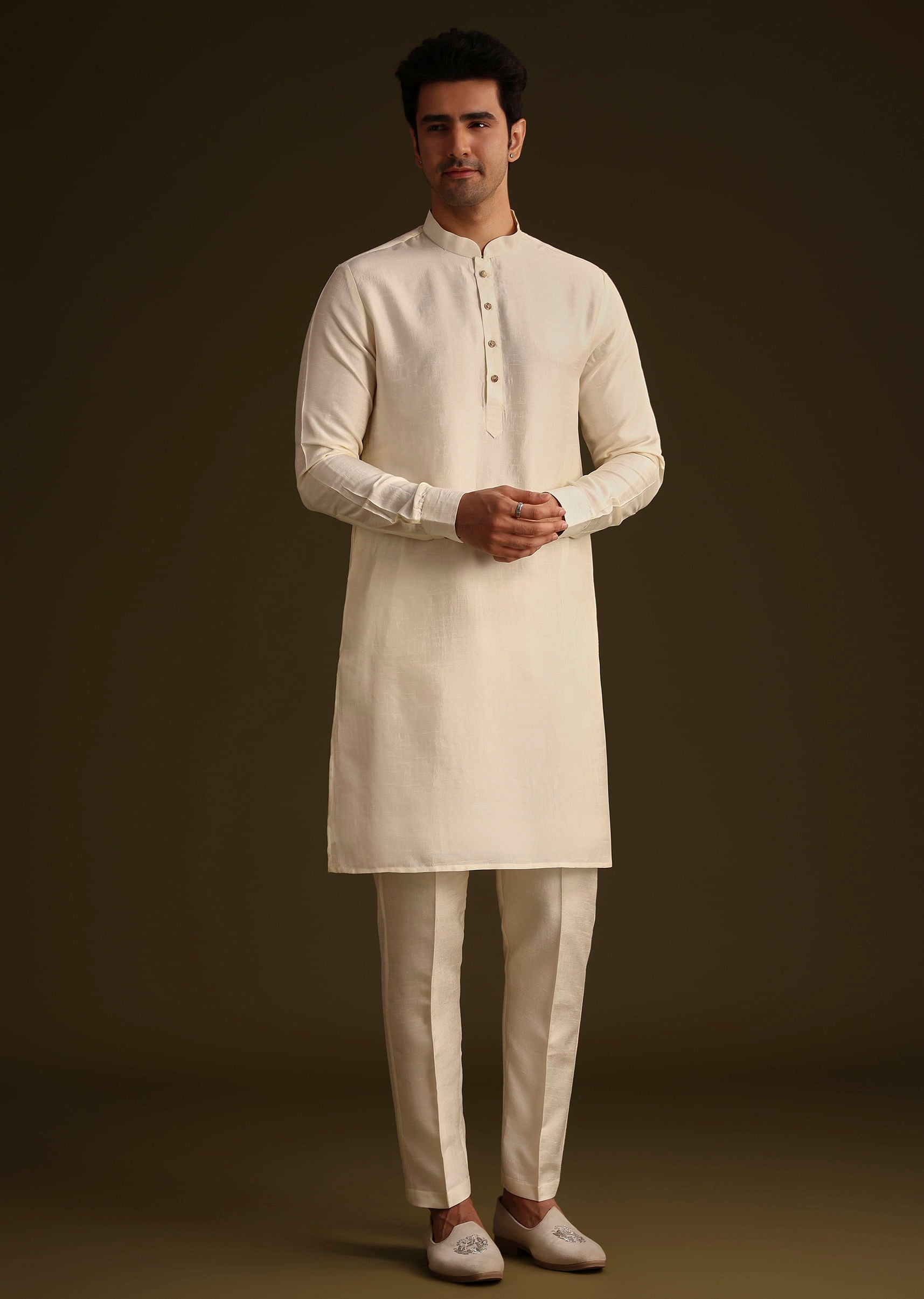 Pair this set with ivory mojaris and a sleek watch for a polished and graceful finish.