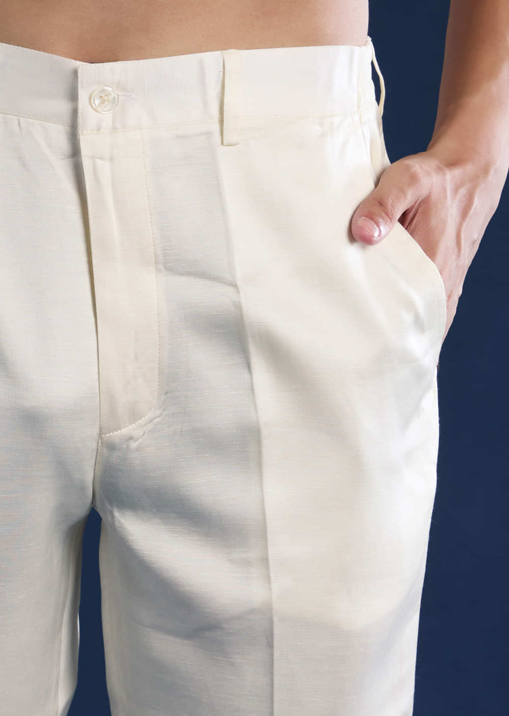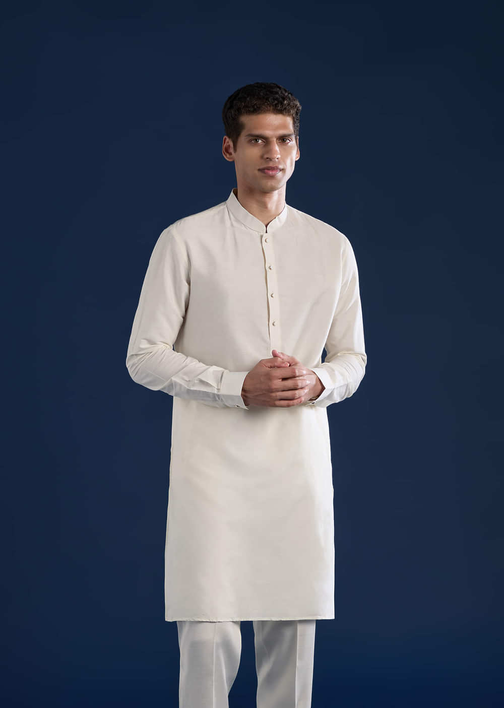 Evoking a sense of classic sophistication, this cream silk jacket and kurta set with coordinated pants captures the essence of refined tradition. The lustrous silk fabric serves as an elegant... More Product Details