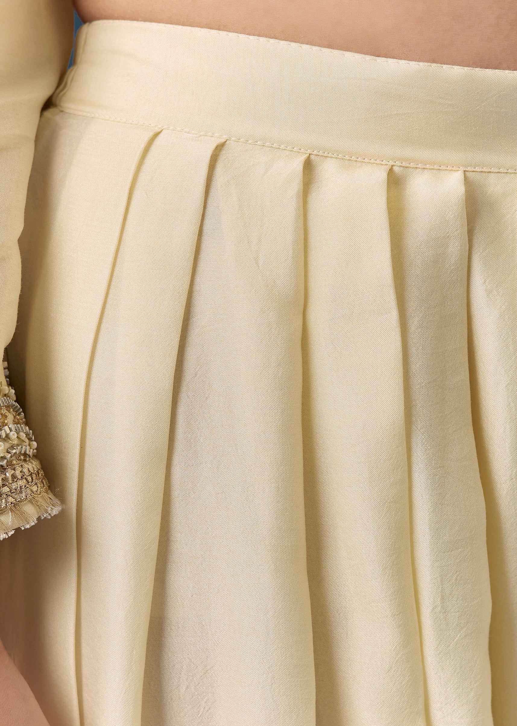 Crafted in silk, this asymmetric kurta is finished with gotta, moti and bead detailing and paired with an ombre dupatta. Designed with a round neckline, flared sleeves and back button... More Product Details