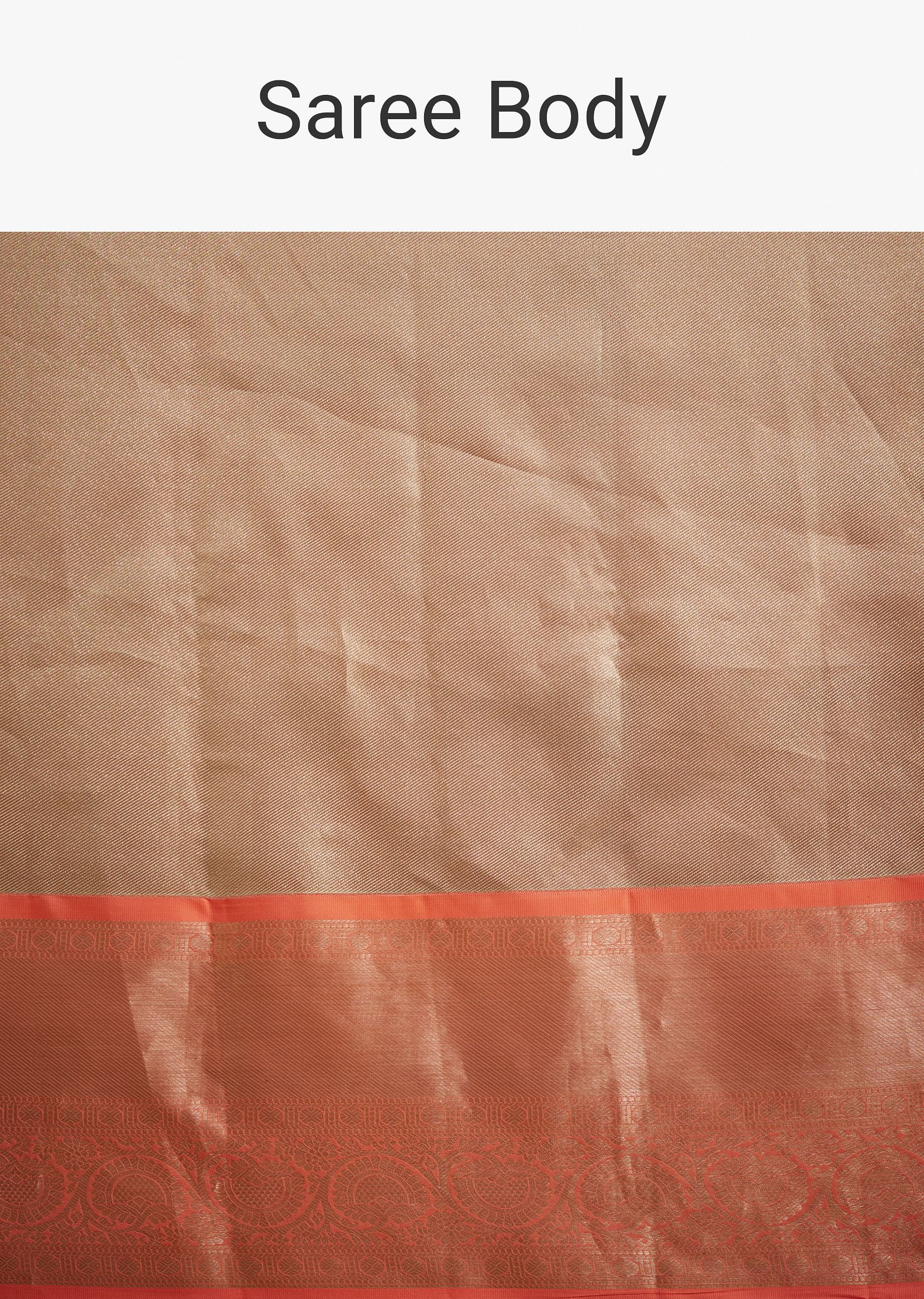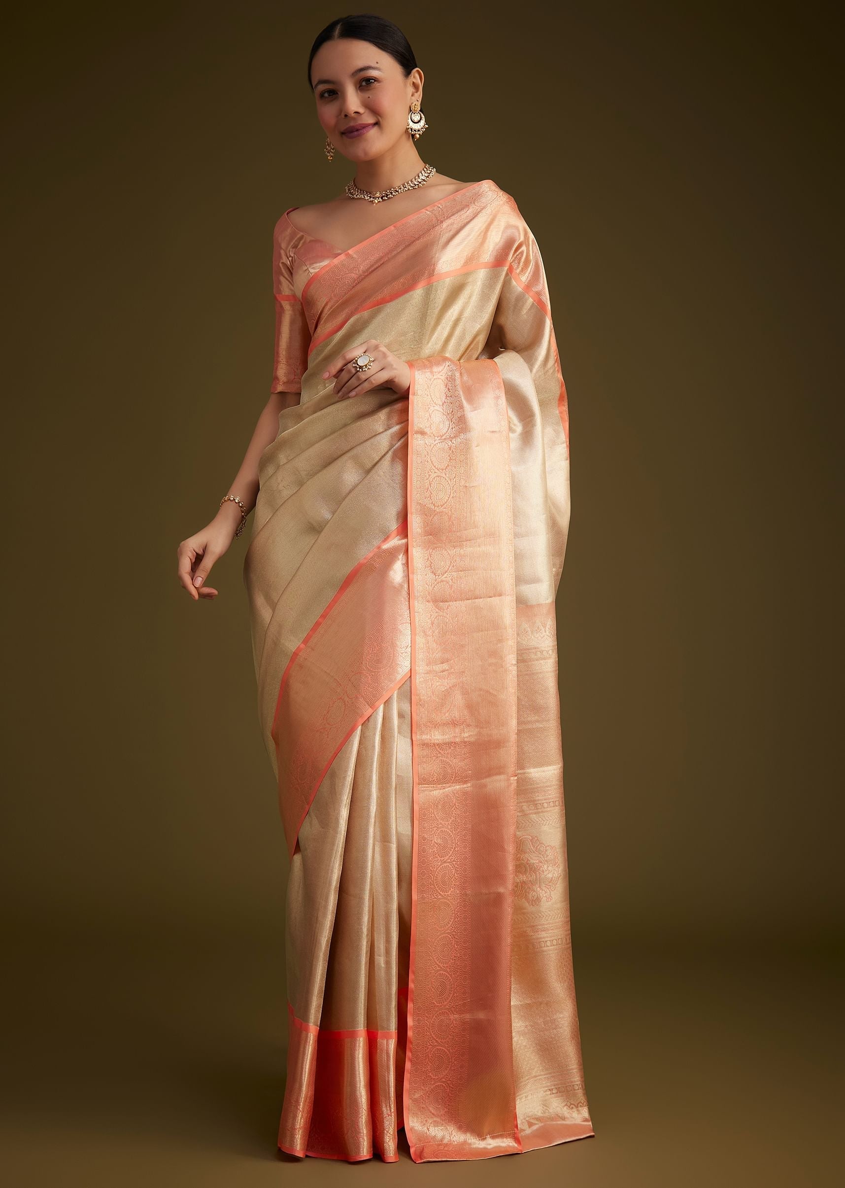 - Embrace Timeless Grace With This Cream Kanjivaram Silk Saree Accentuated By A Vibrant Contrast Border And Pallu.