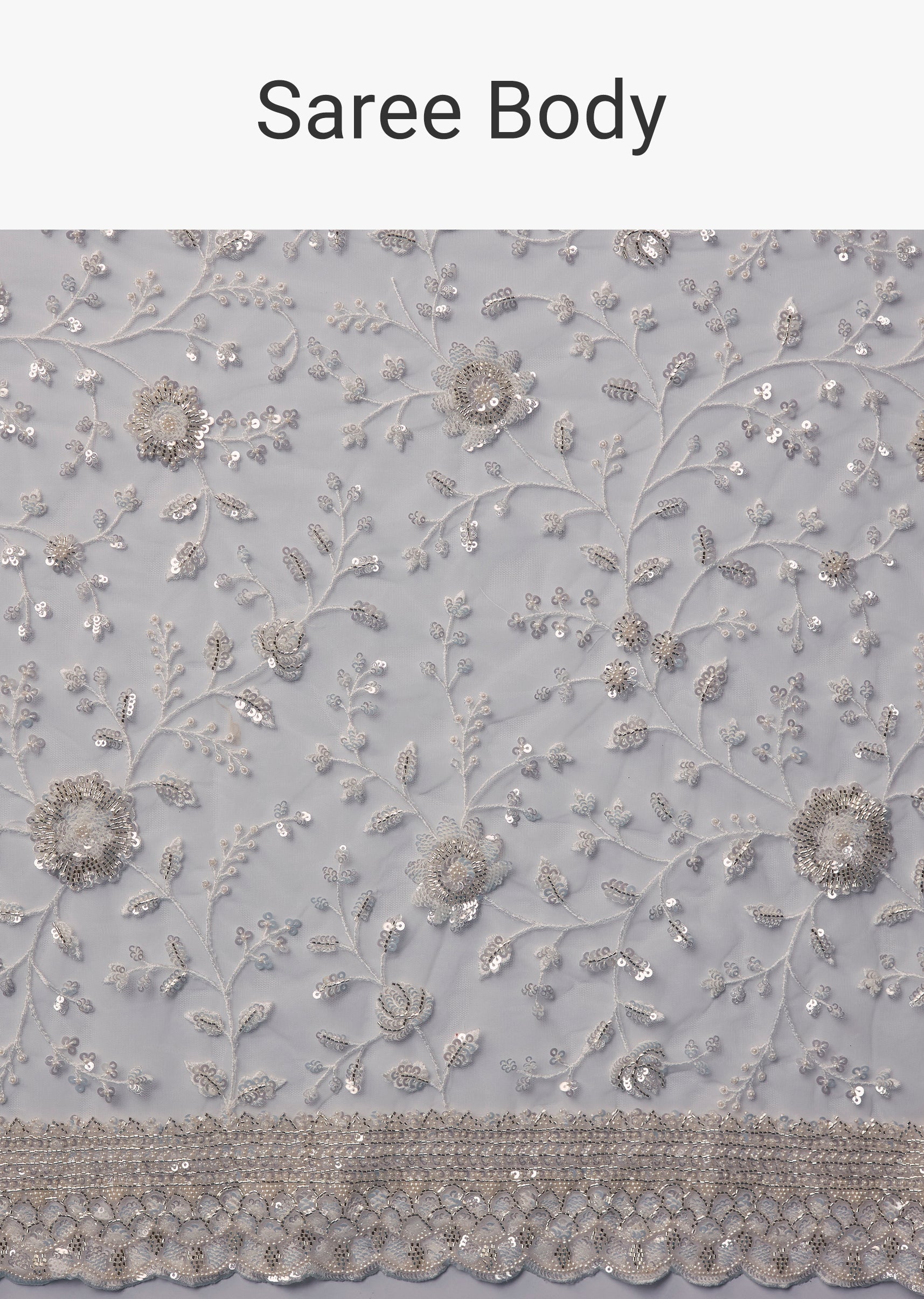 Fit Tips:Stitch the blouse for a tailored, structured fit to complement the saree’s light, graceful drape and intricate embroidery.