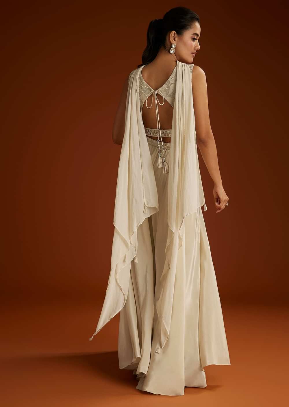 Pack Contains: 1 Croptop 1 Palazzo 1 Dupatta 1 Attached sleeves