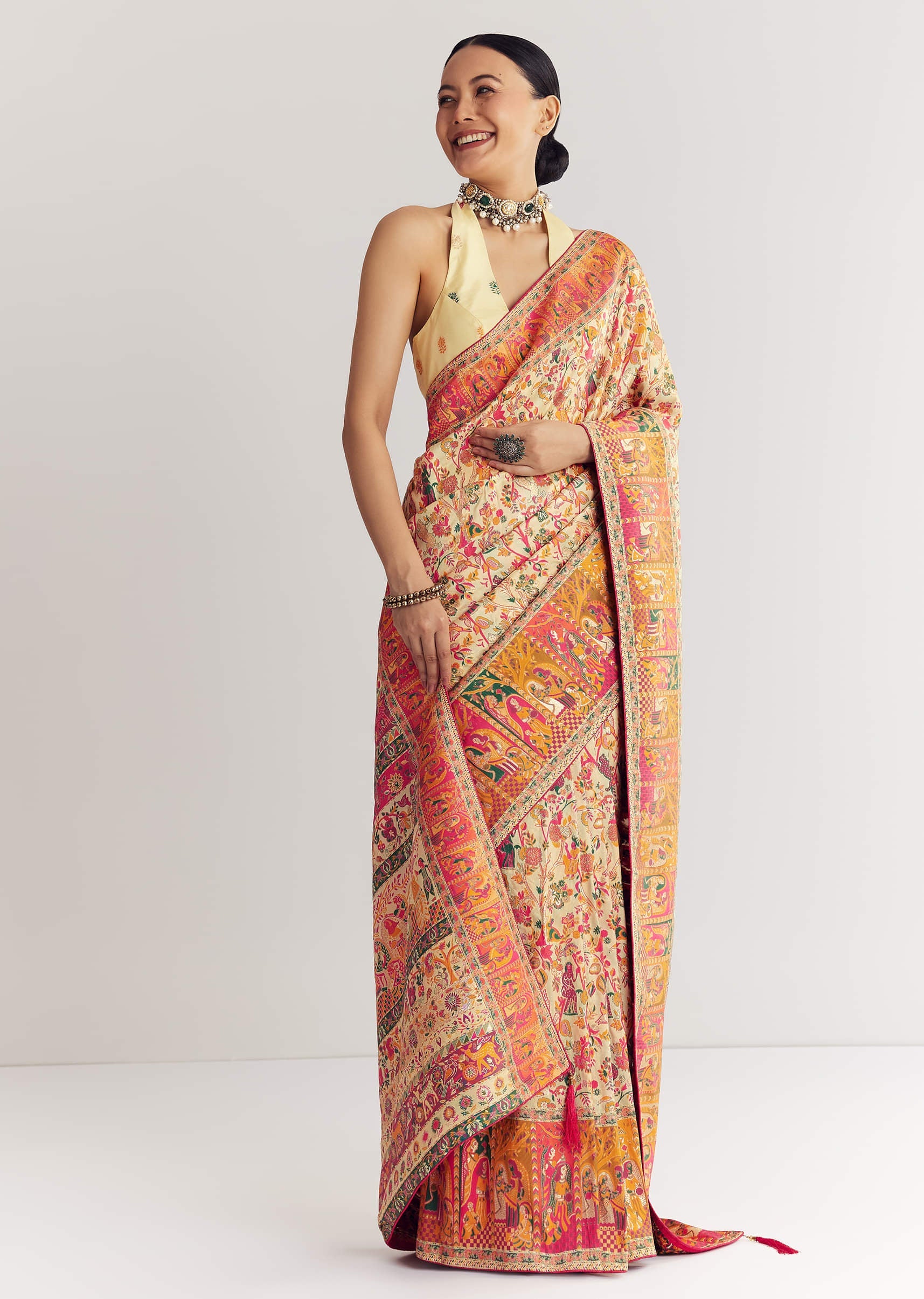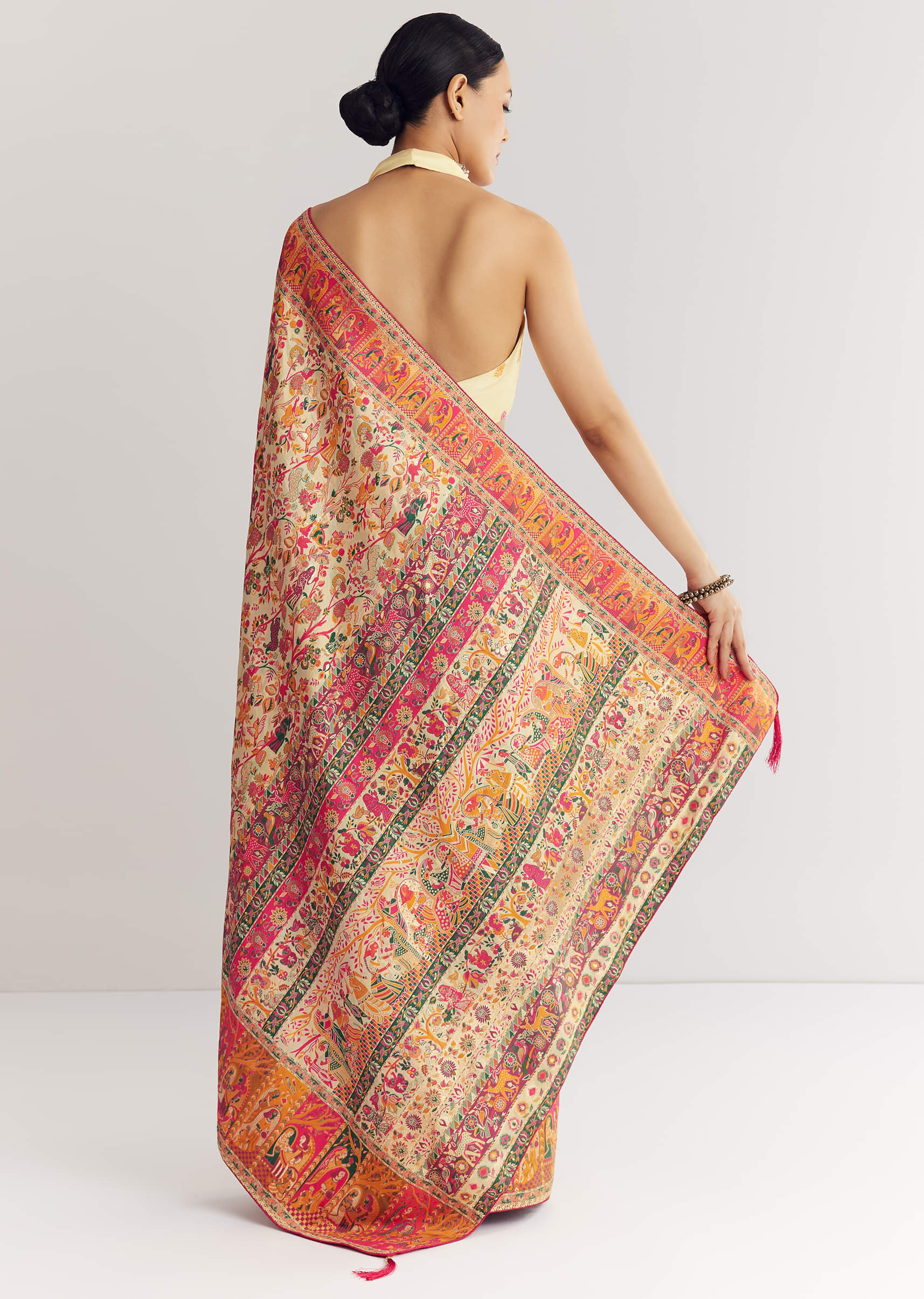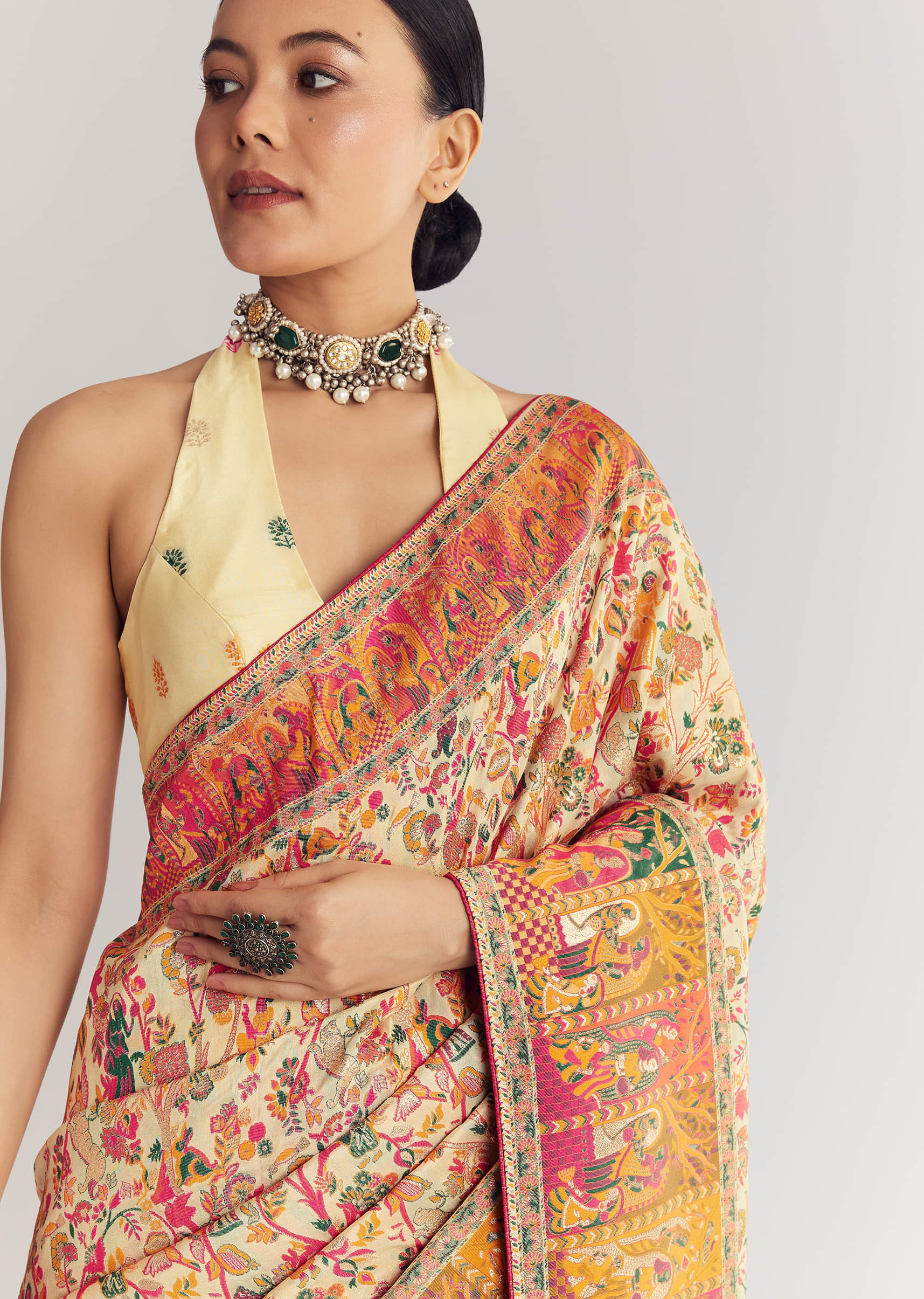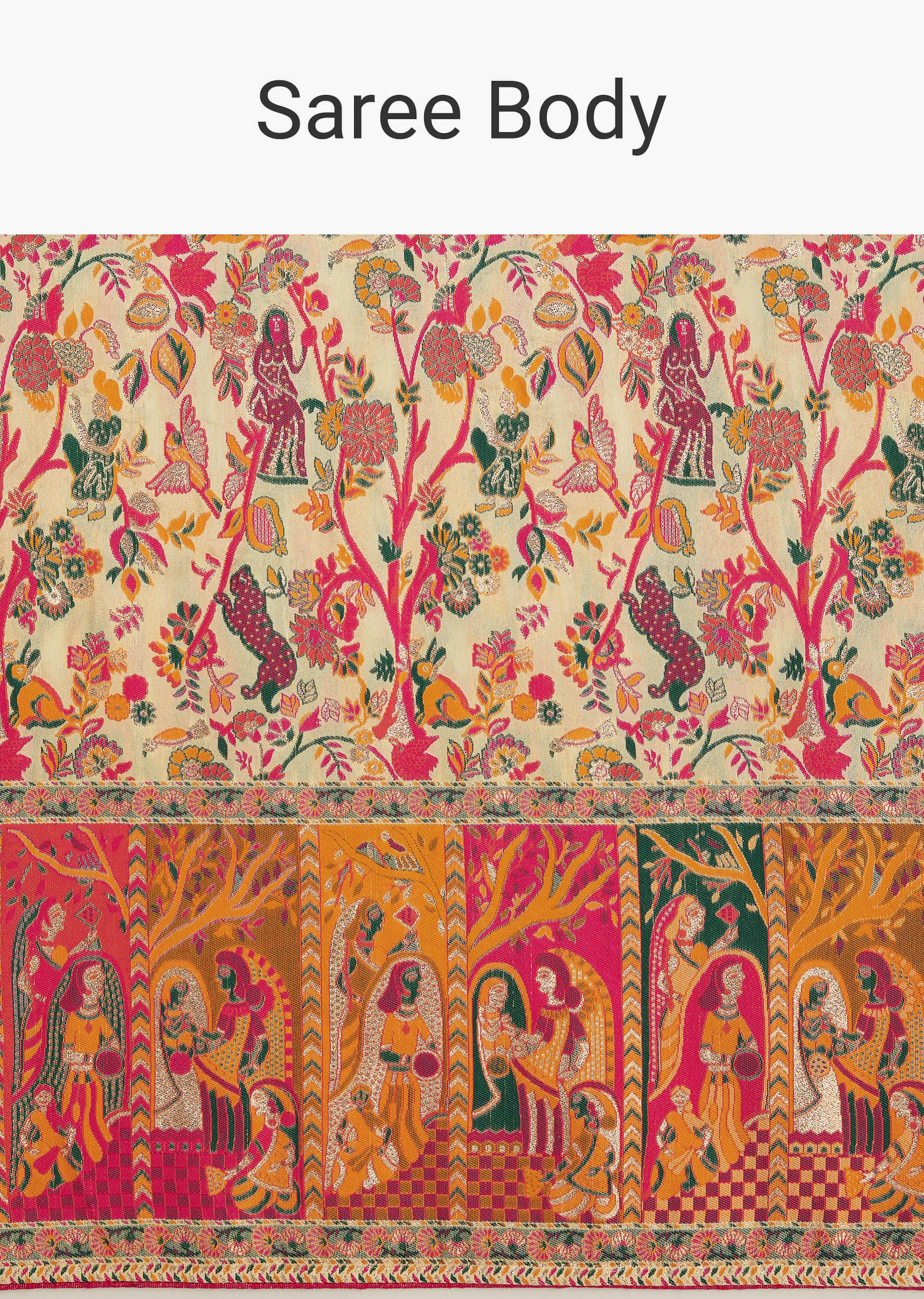 Cream Saree With Traditional Woven Elements