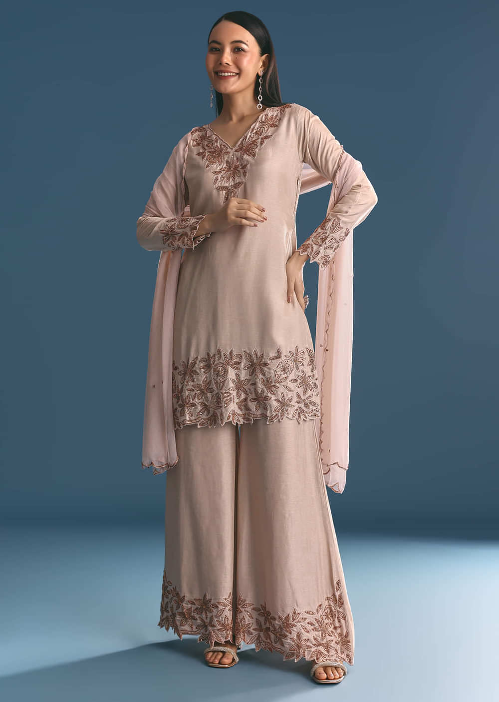 Cream Silk Kurta Palazzo Set With Cut Dana Work