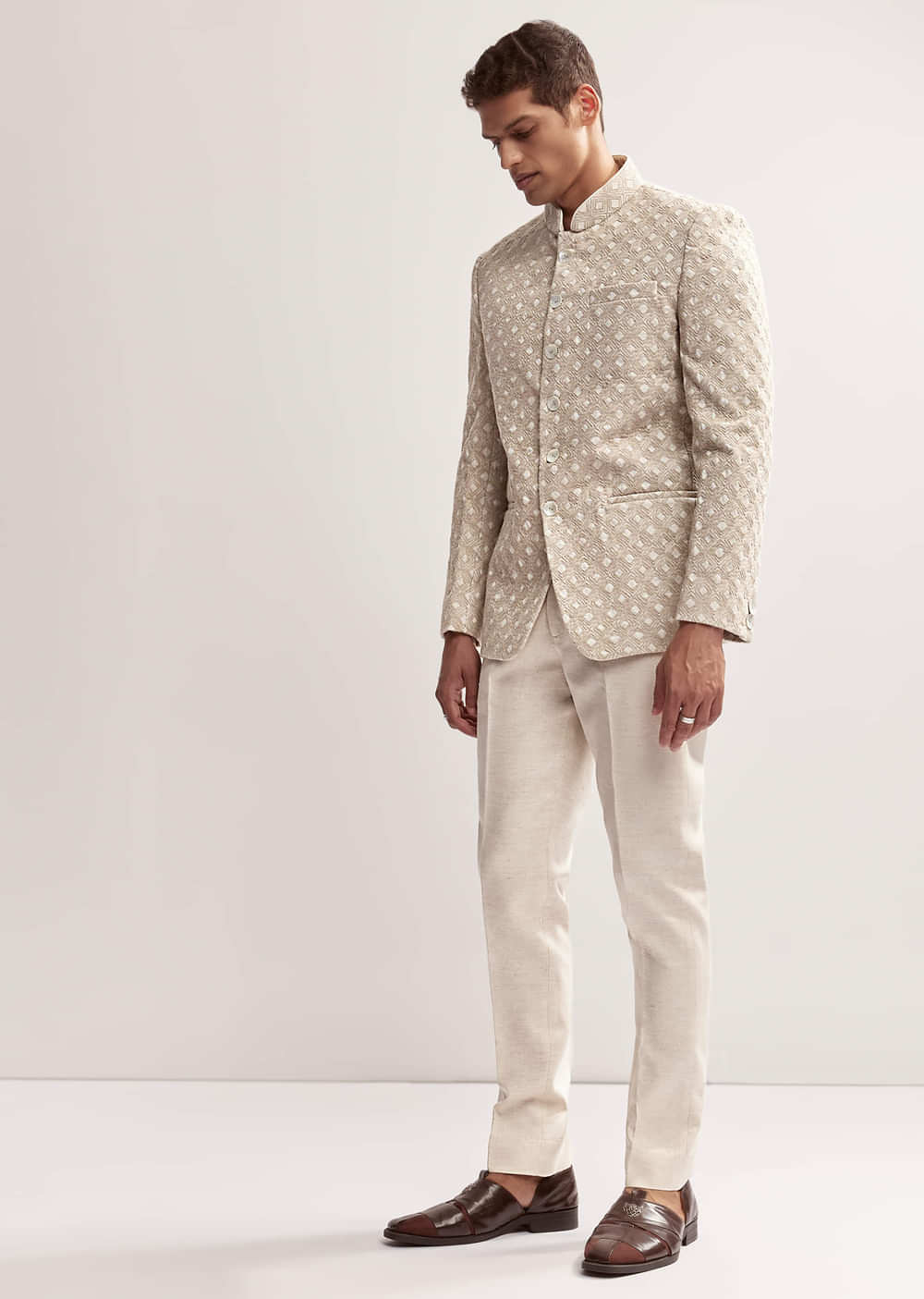 Fit Tips:This jodhpuri should feel structured at the torso with easy arm movement and a comfortable stance for long events.