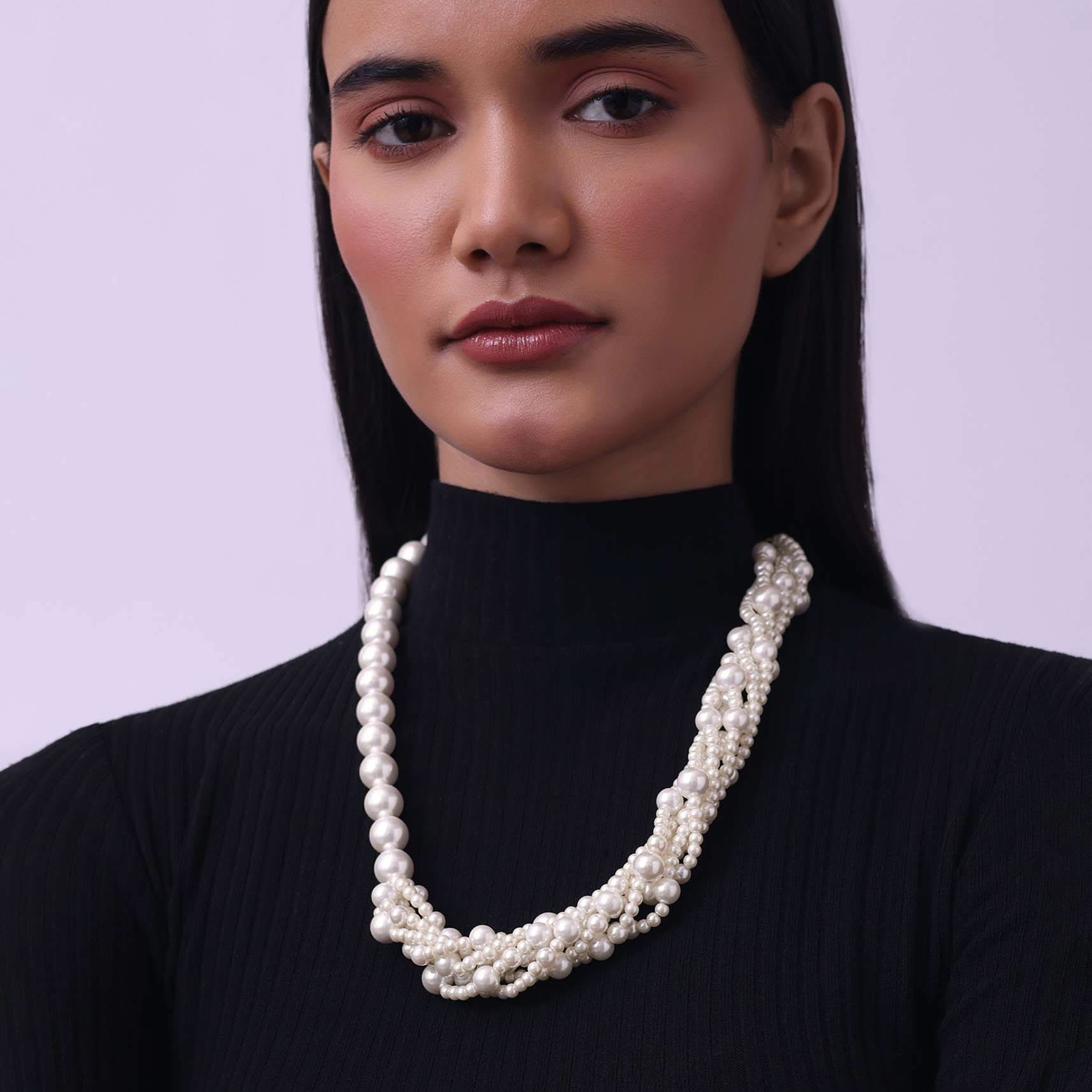 Enhance your elegance with this exquisite cream-white long mala. Crafted with meticulous attention to detail this mala features lustrous pearls delicately arranged to create a stunning visual effect.EVENT - Whether you're attending a wedding or want to elevate your everyday style these studs are the perfect accessory.Avoid contact with water chemicals harsh liquids perfumes etc. Do not wear this piece of jewelry while showering gym swimming etc. Please keep the product away from moisture and humidity when not in use. Slight variations in design may vary. Being rewarded as the most trusted brand our customers believe we deliver the same styles as promised on the website. Awarded as the Most Trusted Brand, we're delivering styles you love, just as promised.