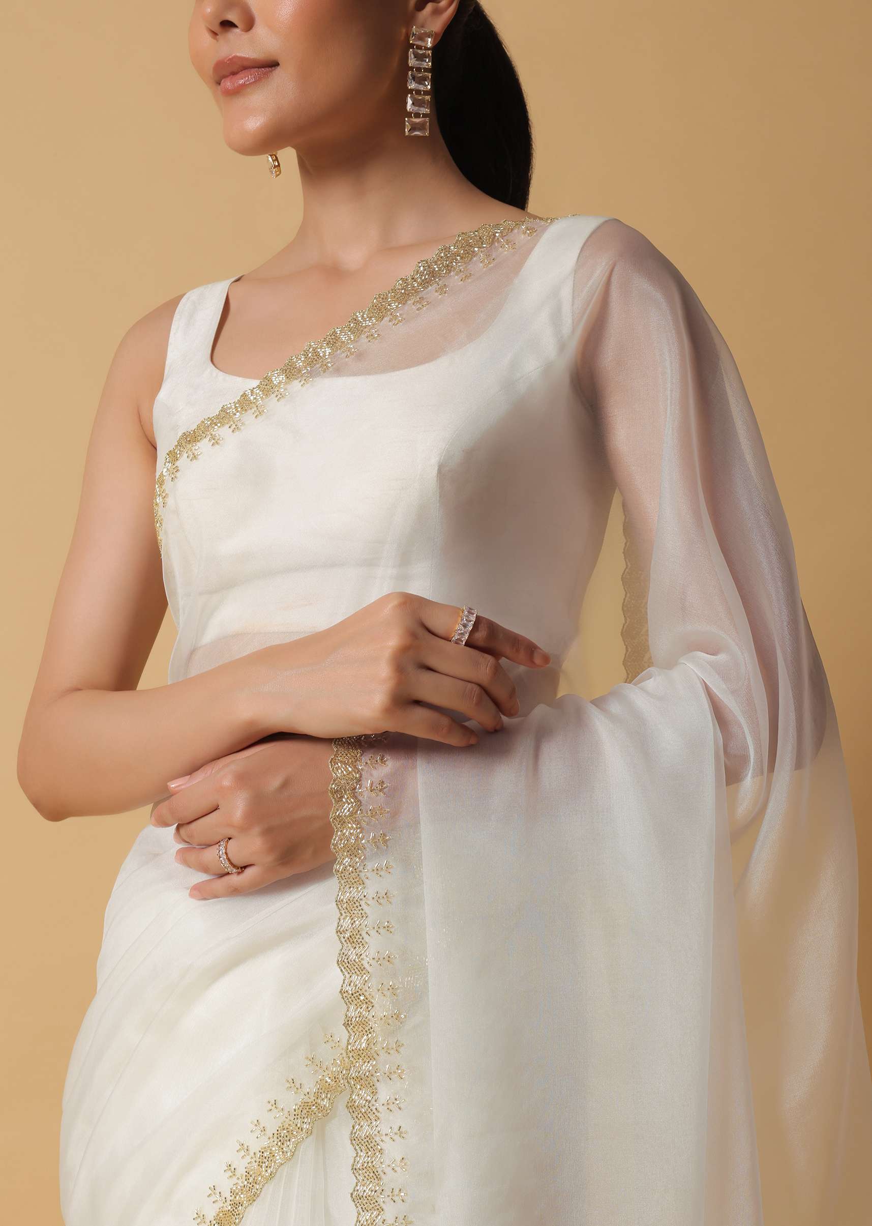 Daisy White Organza Saree In With Cut Dana Embroidered Borders