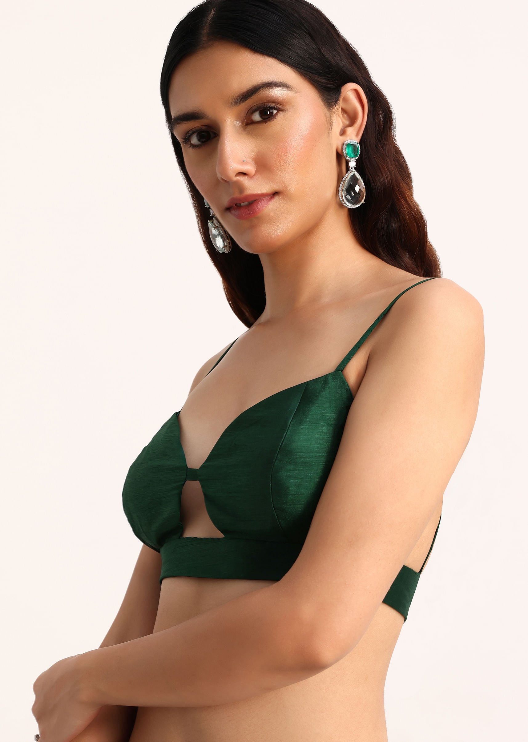Drape yourself in the mystique of this dark green tissue saree. Adorned with intricate thread and stone embroidery, it's a masterpiece waiting to be unveiled. Perfect for enchanting festivities, this saree, is paired with an unstitched blouse. Awarded As The Most Trusted Brand We'Re Delivering Styles You Love Just As Promised.