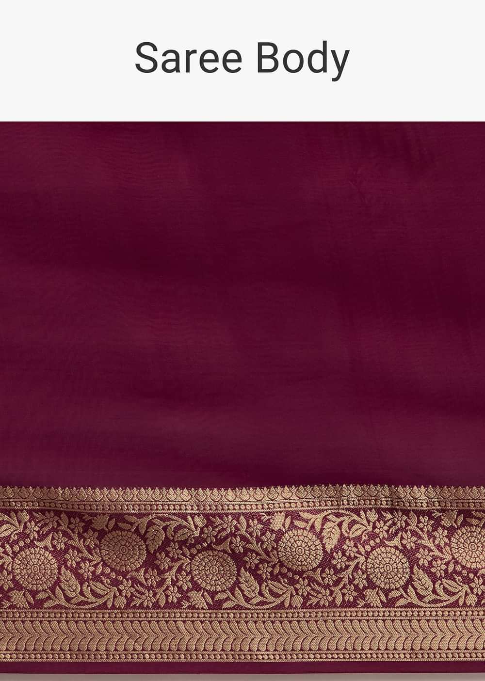 Make A Bold Statement In This Dark Wine Crepe Silk Saree With An Elegant Zari Woven Border And Contrast Blouse. Its Rich Hue And Classic Design Make It A Versatile... More Product Details