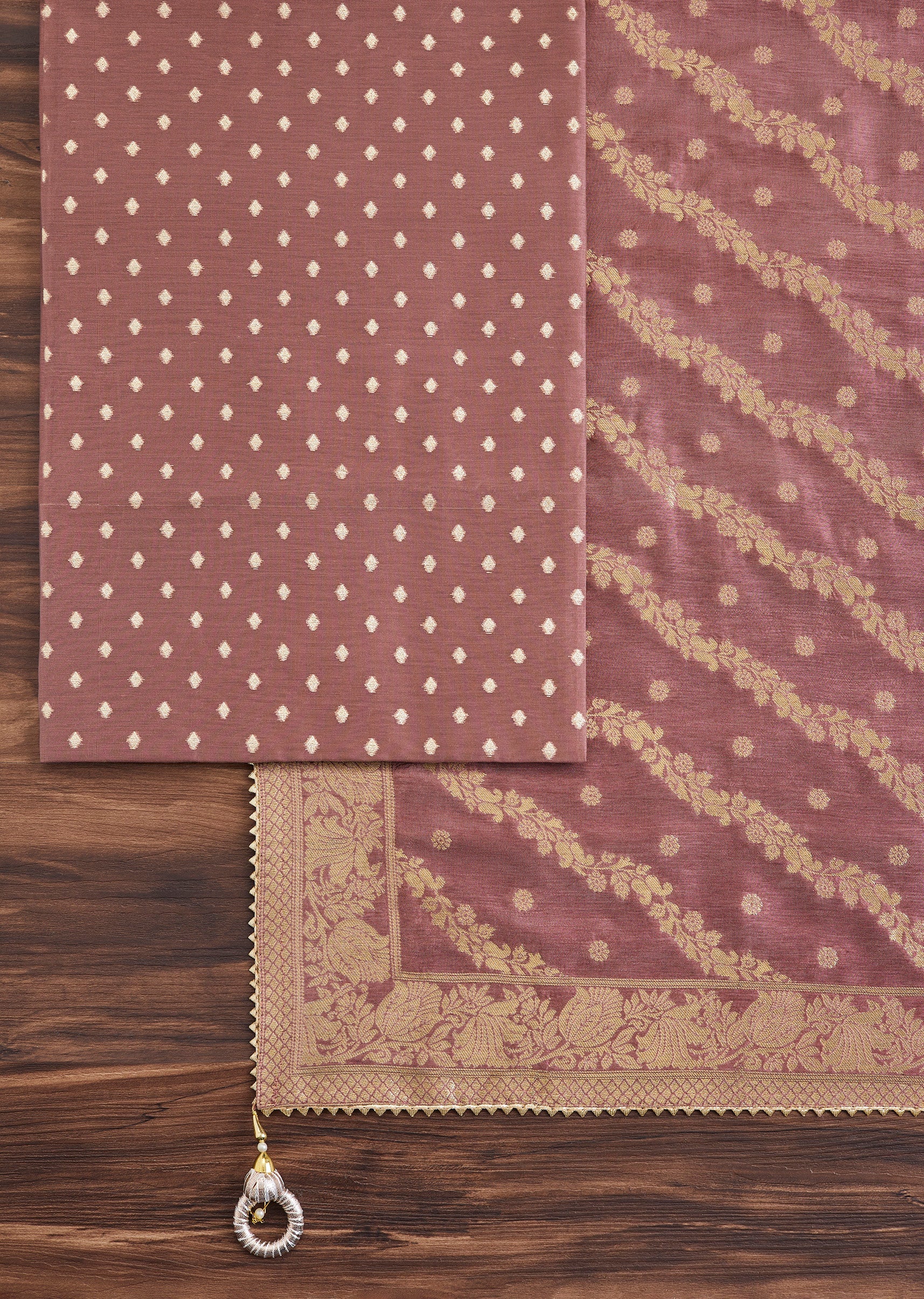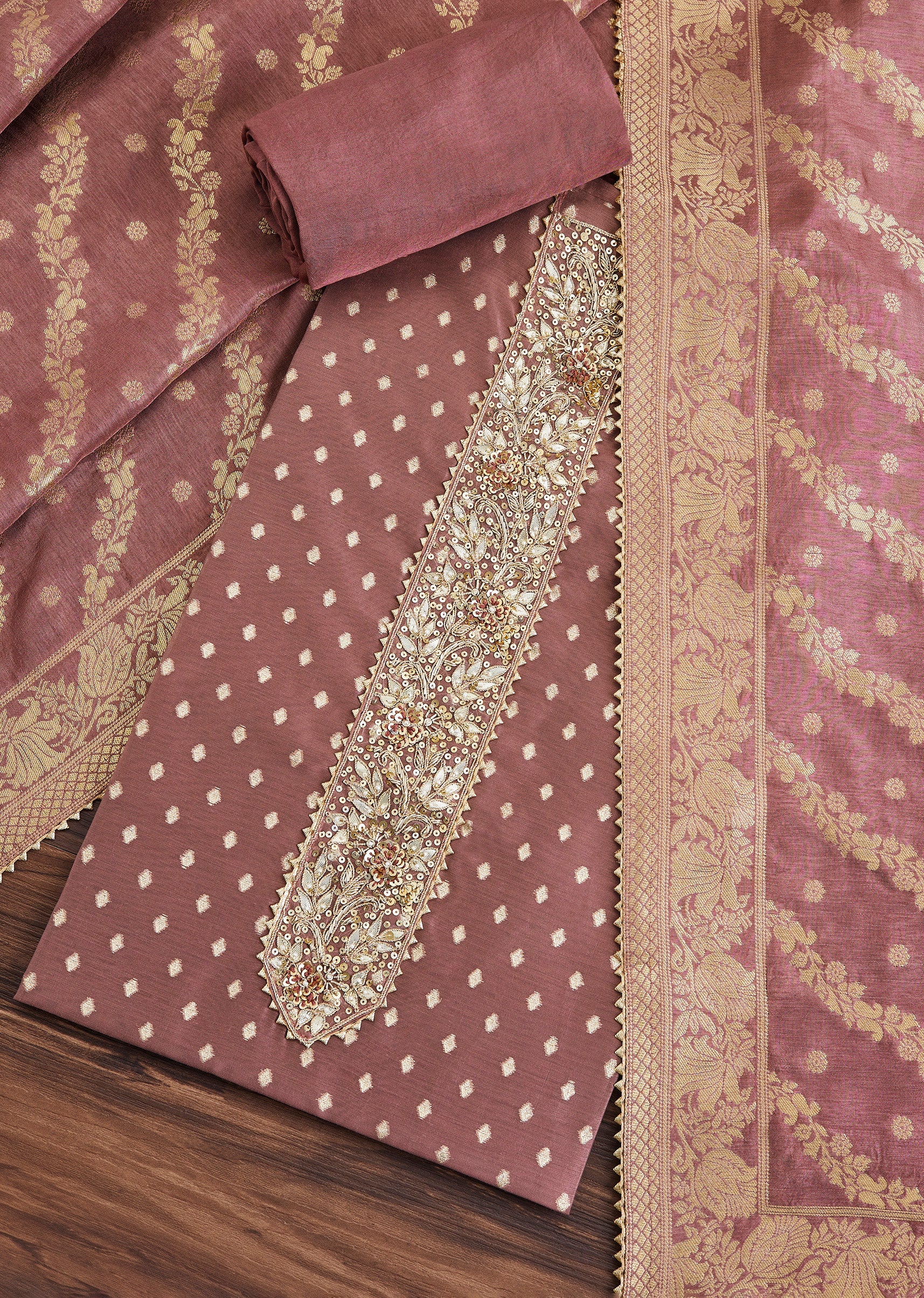 This maroon unstitched suit in premium chanderi fabric is enhanced with elegant embroidery that adds depth and sophistication. Comes with matching bottom fabric and dupatta for complete styling ease. Awarded... More Product Details