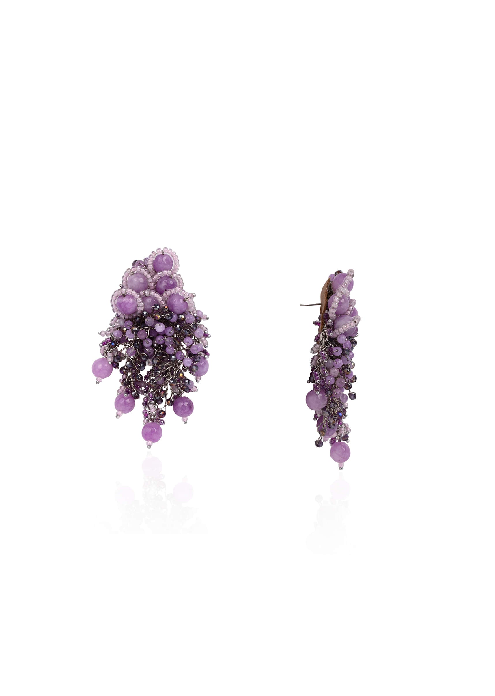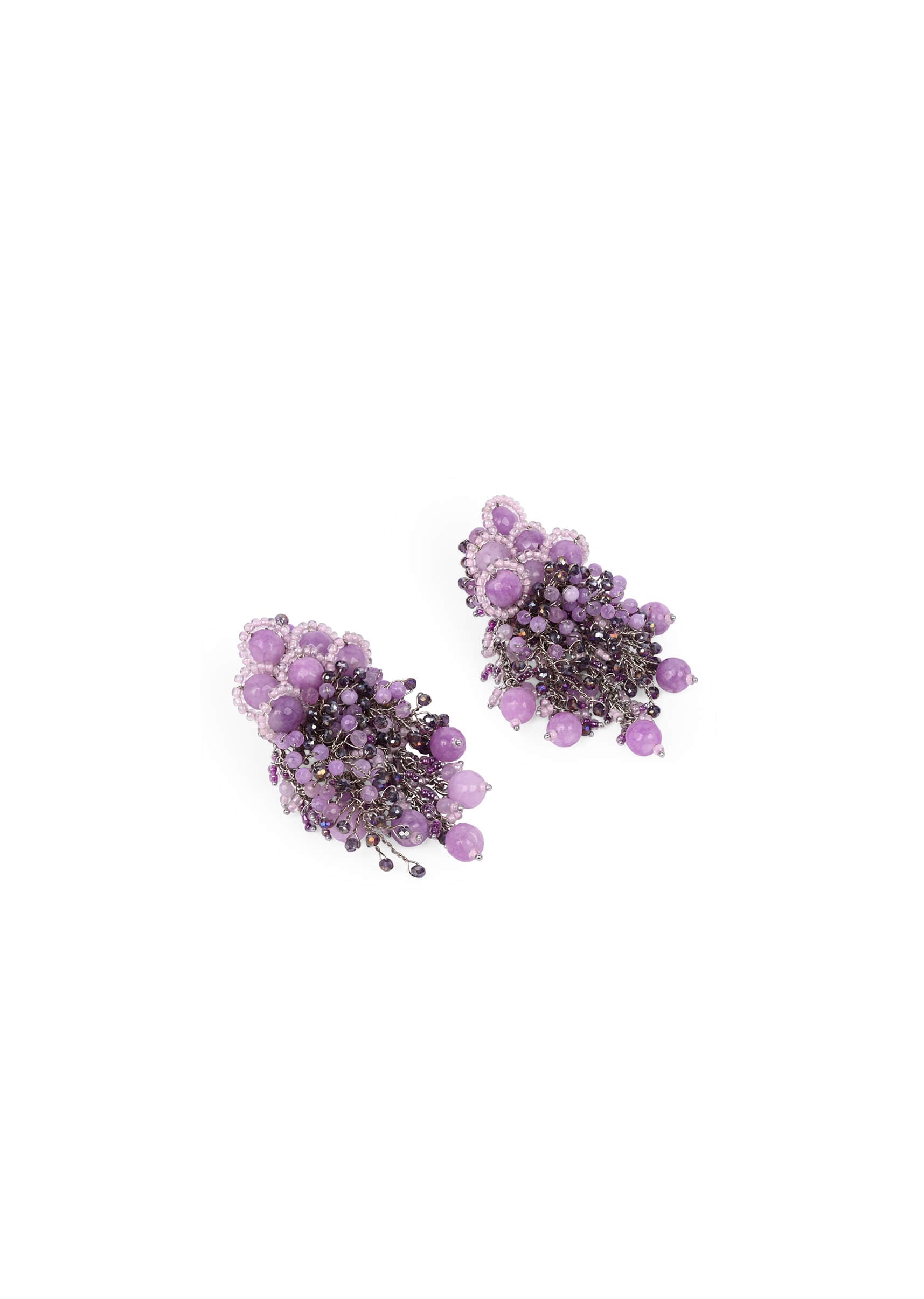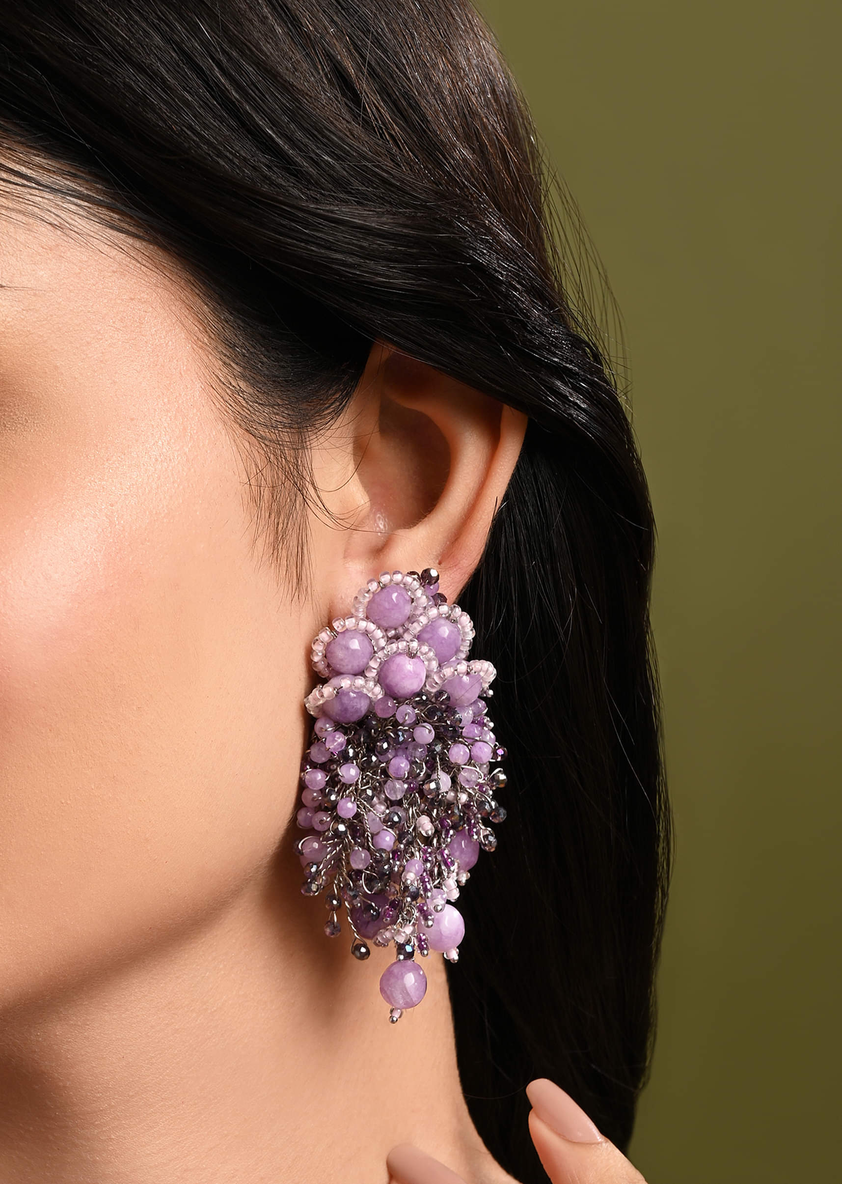 Designer Long Earrings With Purple Lilac Stones
