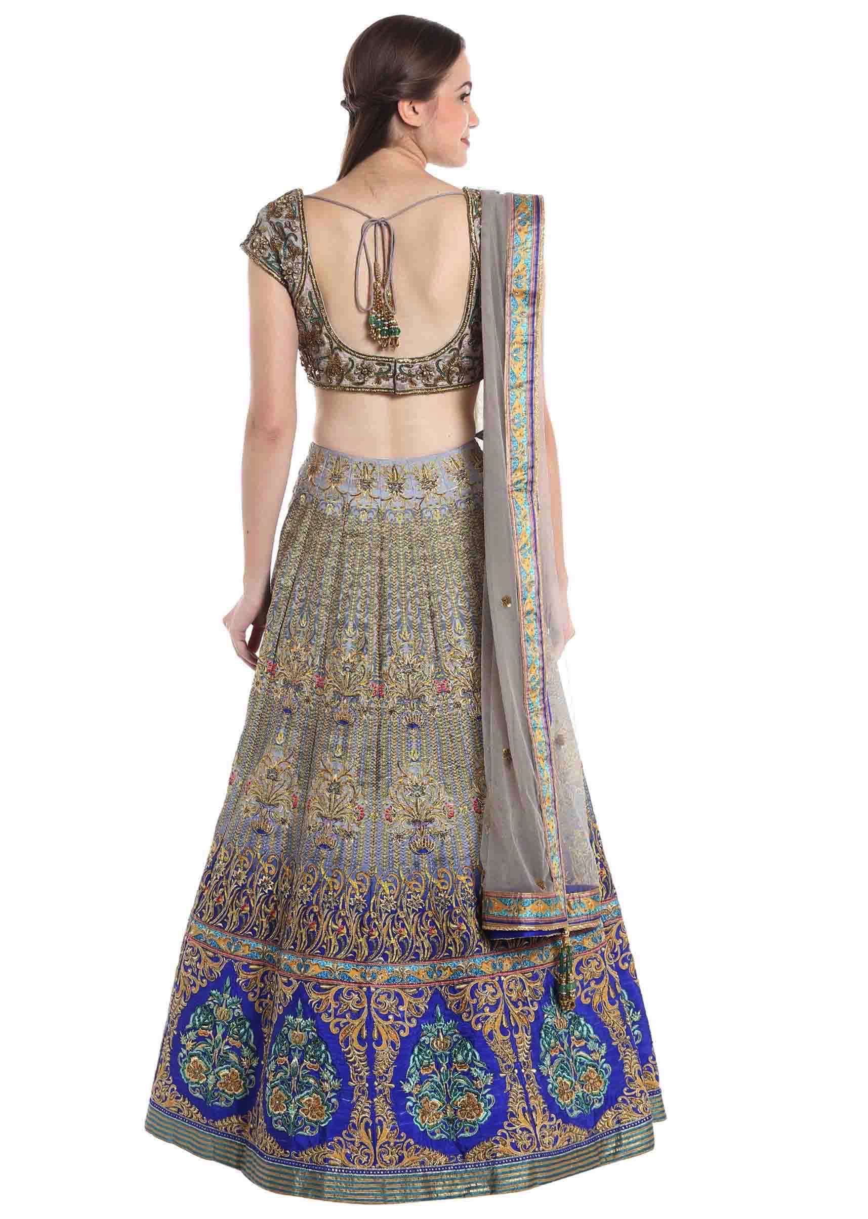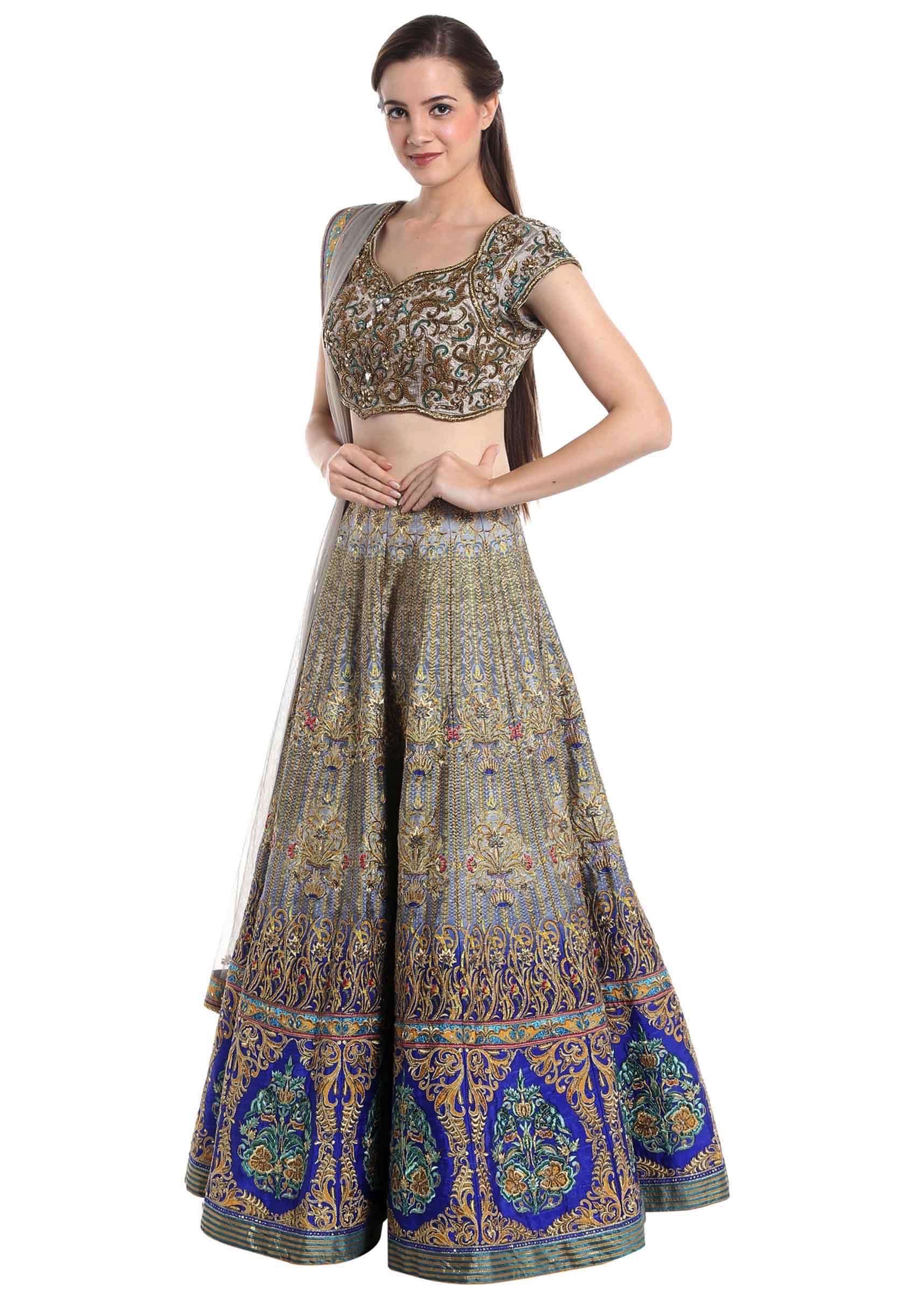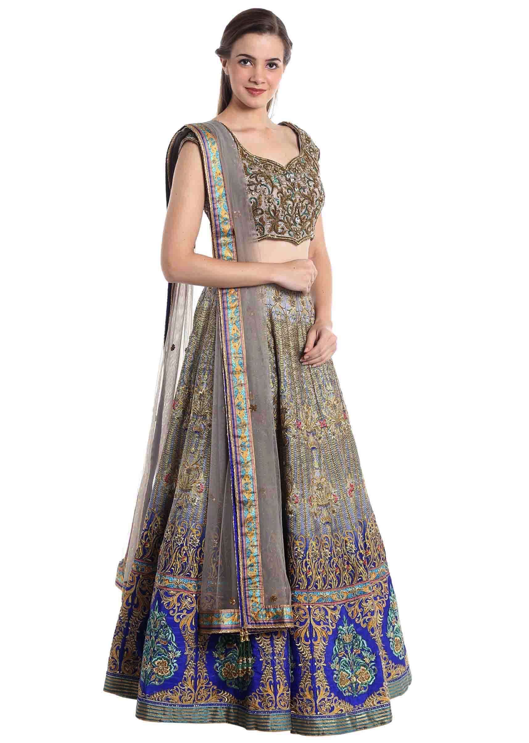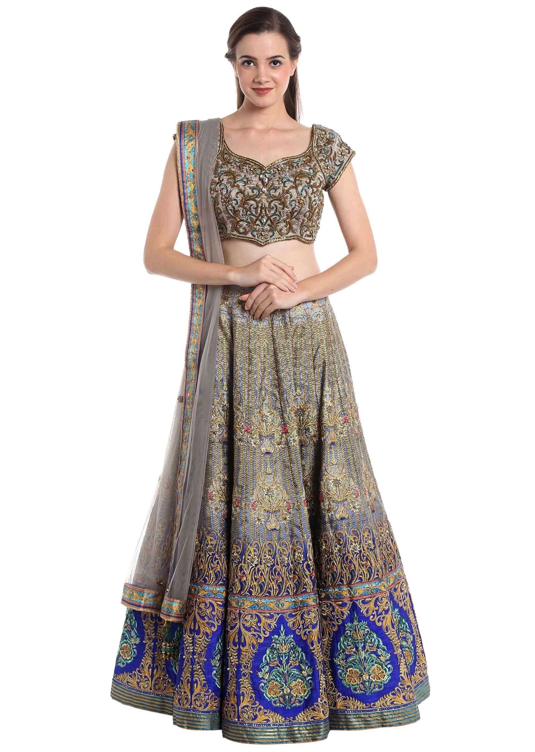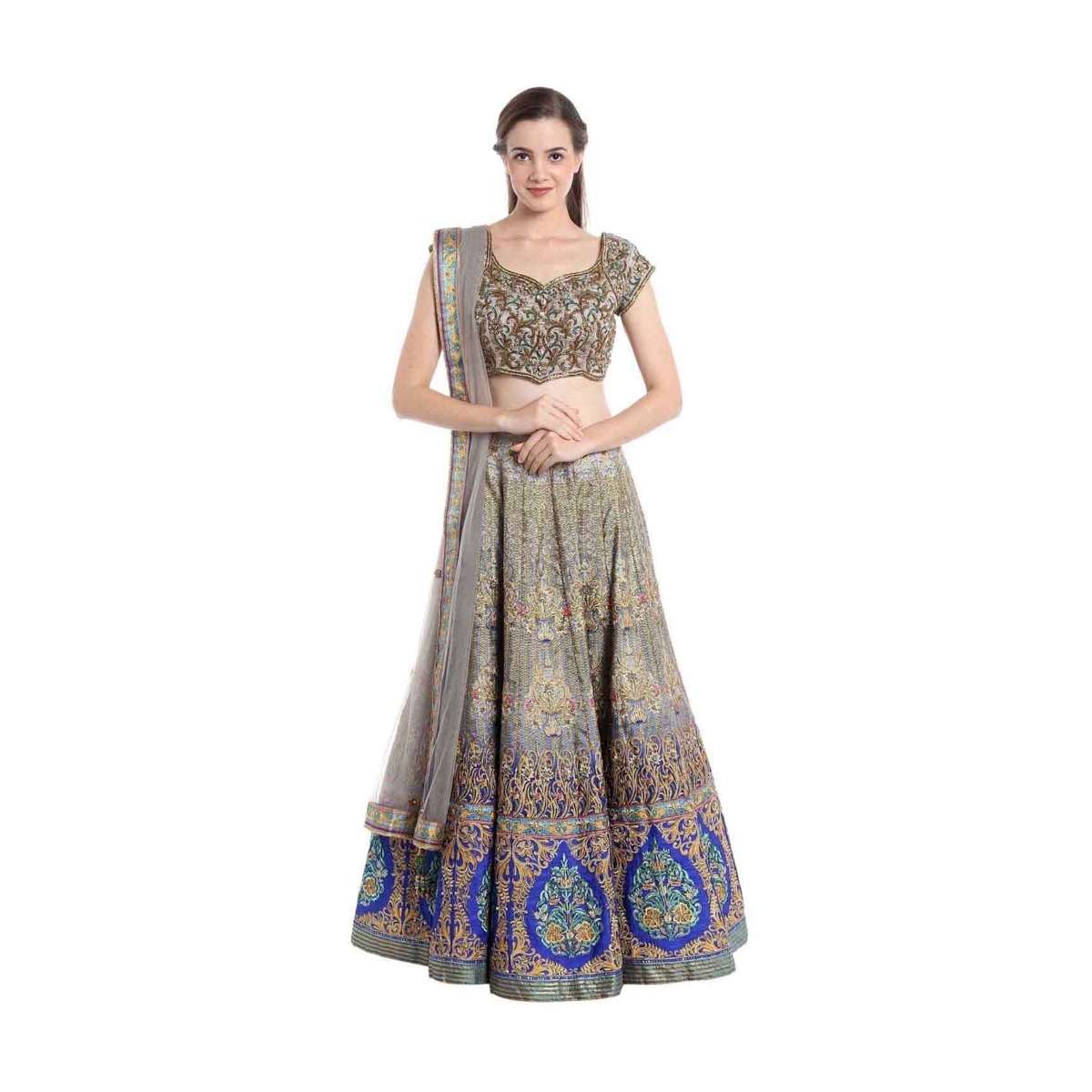 Charm your way through by flaunting the ethnic beauty of this grey and blue silk lehenga choli ensemble The ensemble features intricate digital prints that are highlighted with resham and cut dana work. The embellished net dupatta complements the look well. Awarded As The Most Trusted Brand We'Re Delivering Styles You Love Just As Promised.