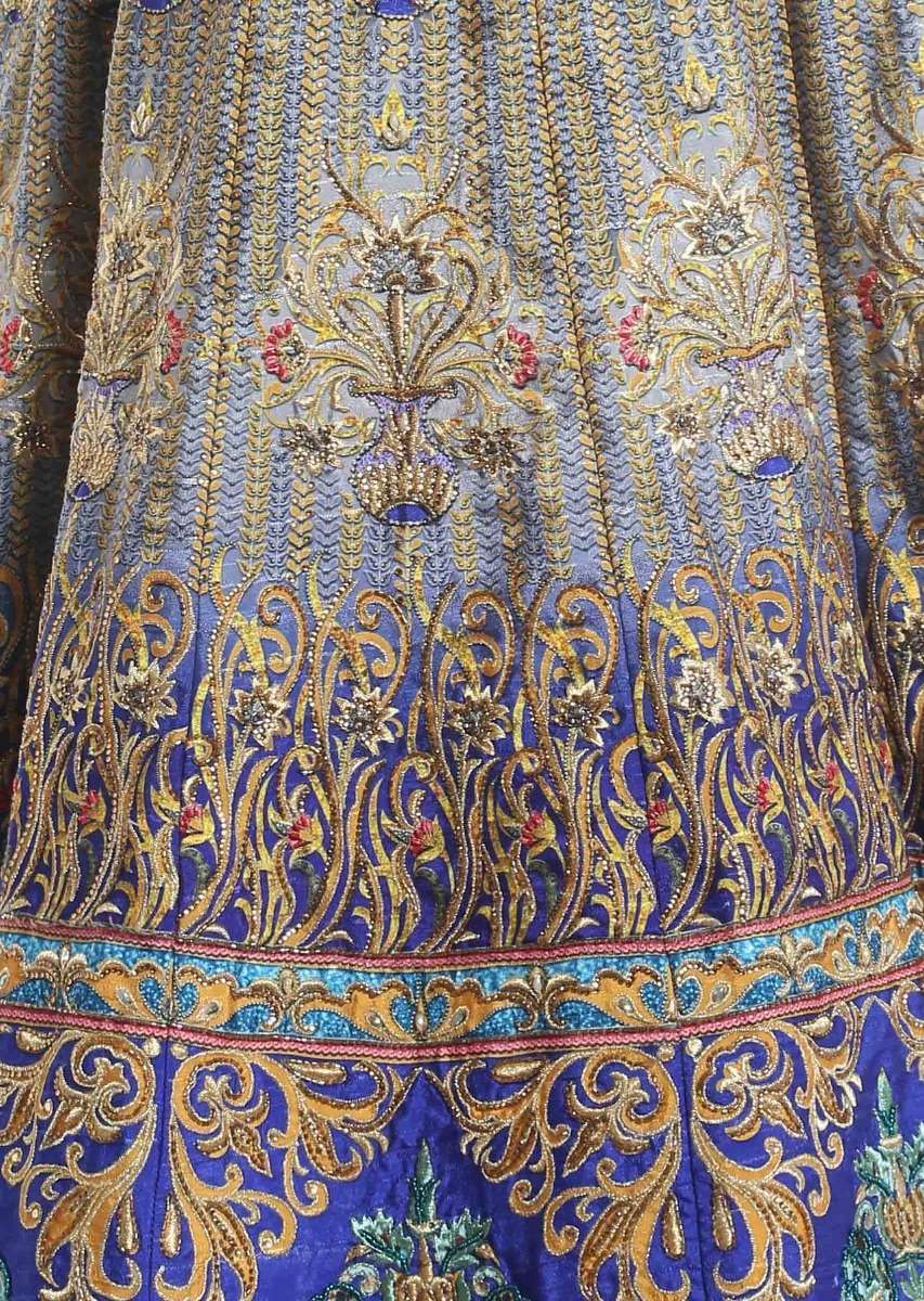 Digital printed grey and blue silk lehenga choli with resham and cut dana only on Kalki