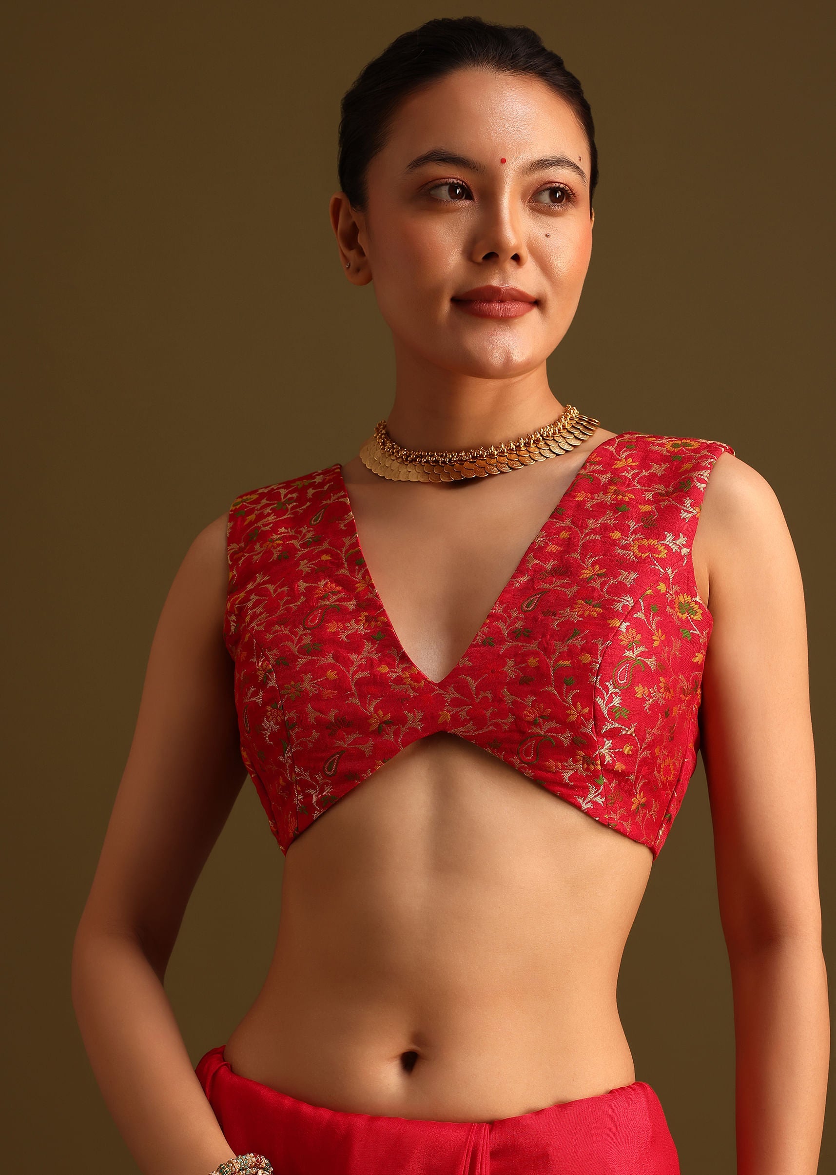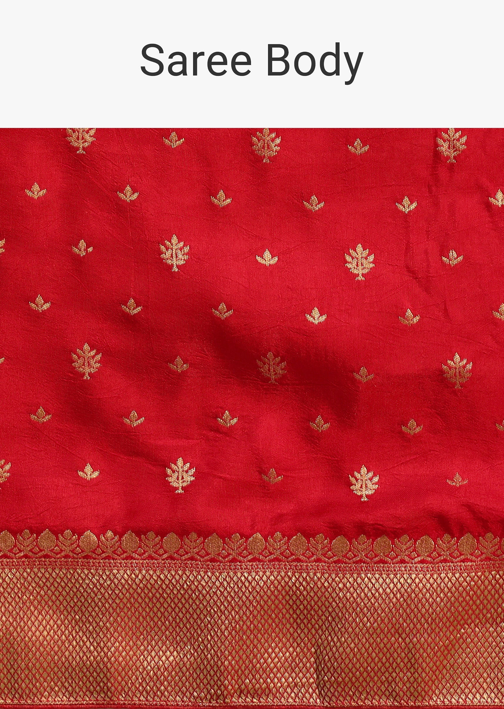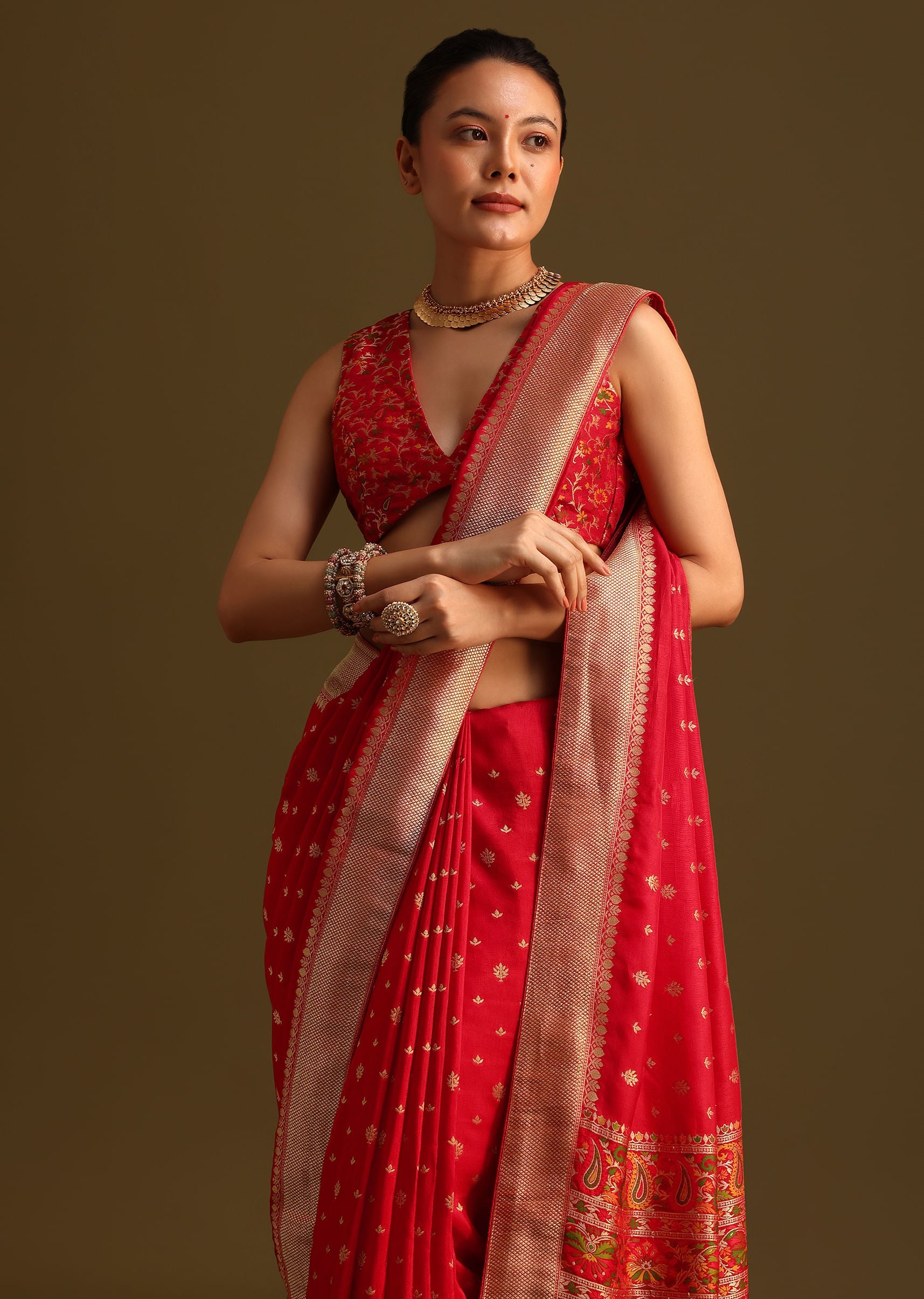 Dola Silk Red Bandhani Saree With Meenakari Border Pallu And Unstitched Blouse