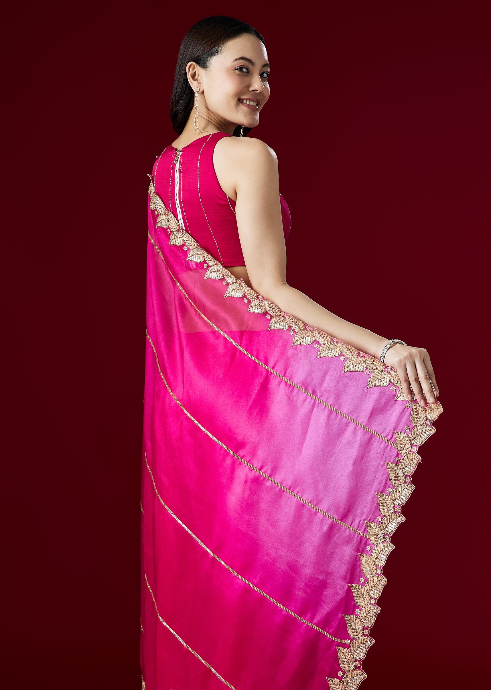 Dual Pink Shaded Organza Silk Saree With Embroidered Border