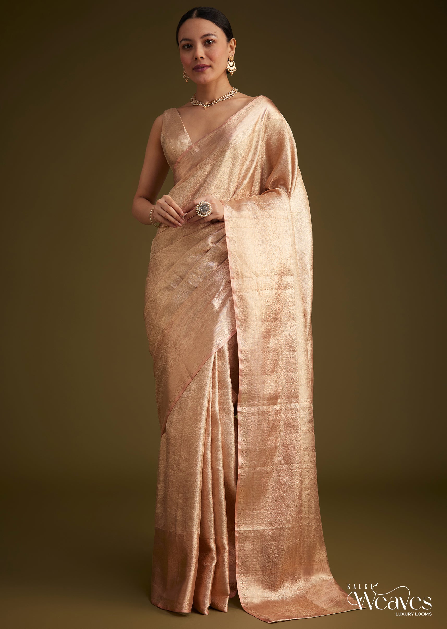 - Adorn Yourself With The Elegance Of This Dusty Pink Kanjivaram Silk Saree A Masterpiece That Blends Traditional Craftsmanship With Contemporary Charm.