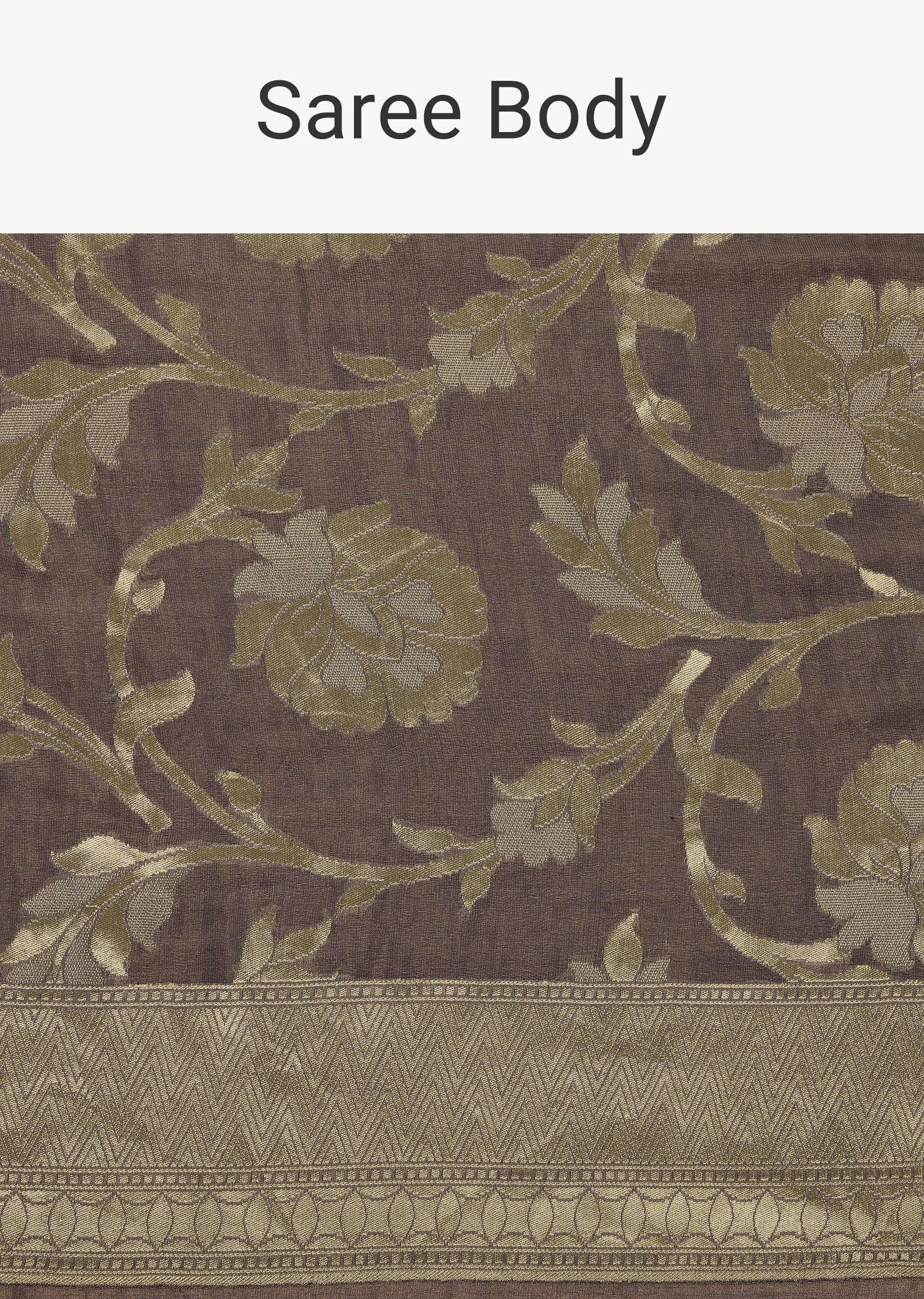 Fog Grey Saree In Tissue Georgette With Banarasi Zari Weave And An Unstitched Blouse