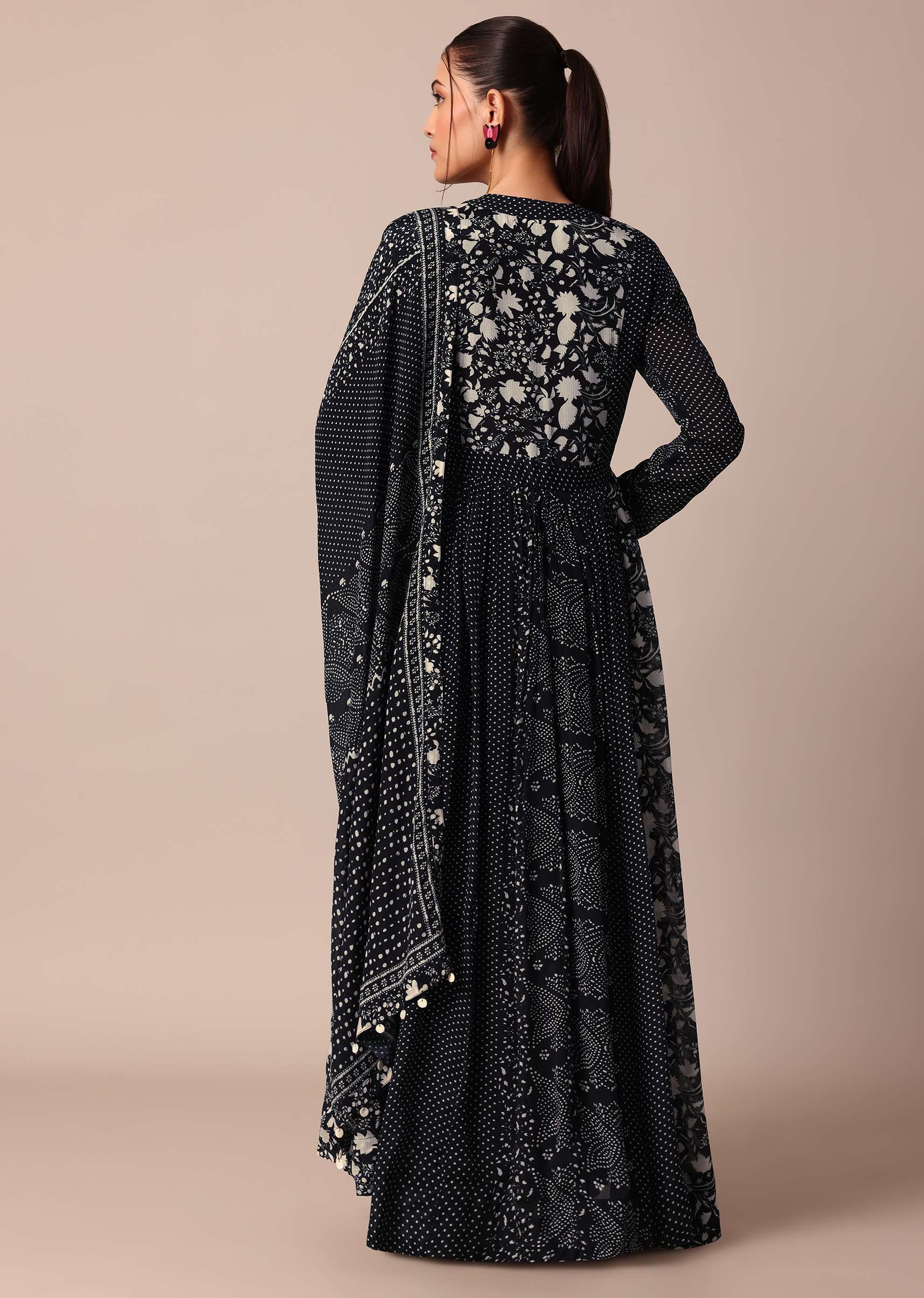 Step into festive opulence with our Elegant Black Printed Embroidery Anarkali Pant Set. The embroidered Anarkali is crafted from flowing Chiffon with a high neckline full sleeves and front zip... More Product Details
