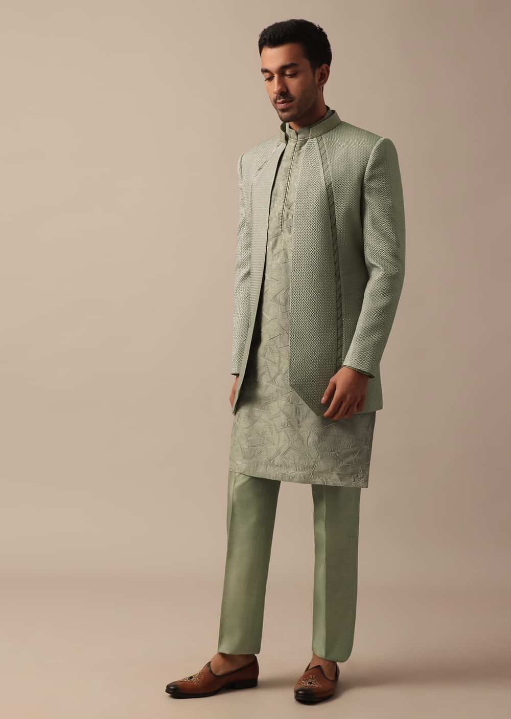Elegant Green Indowestern Set Featuring Striking Self Work