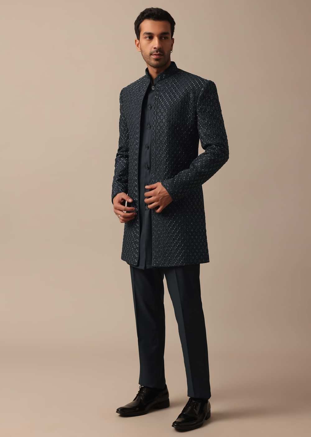 Elegant Grey Heavy Embroidered Indowestern For Grooms