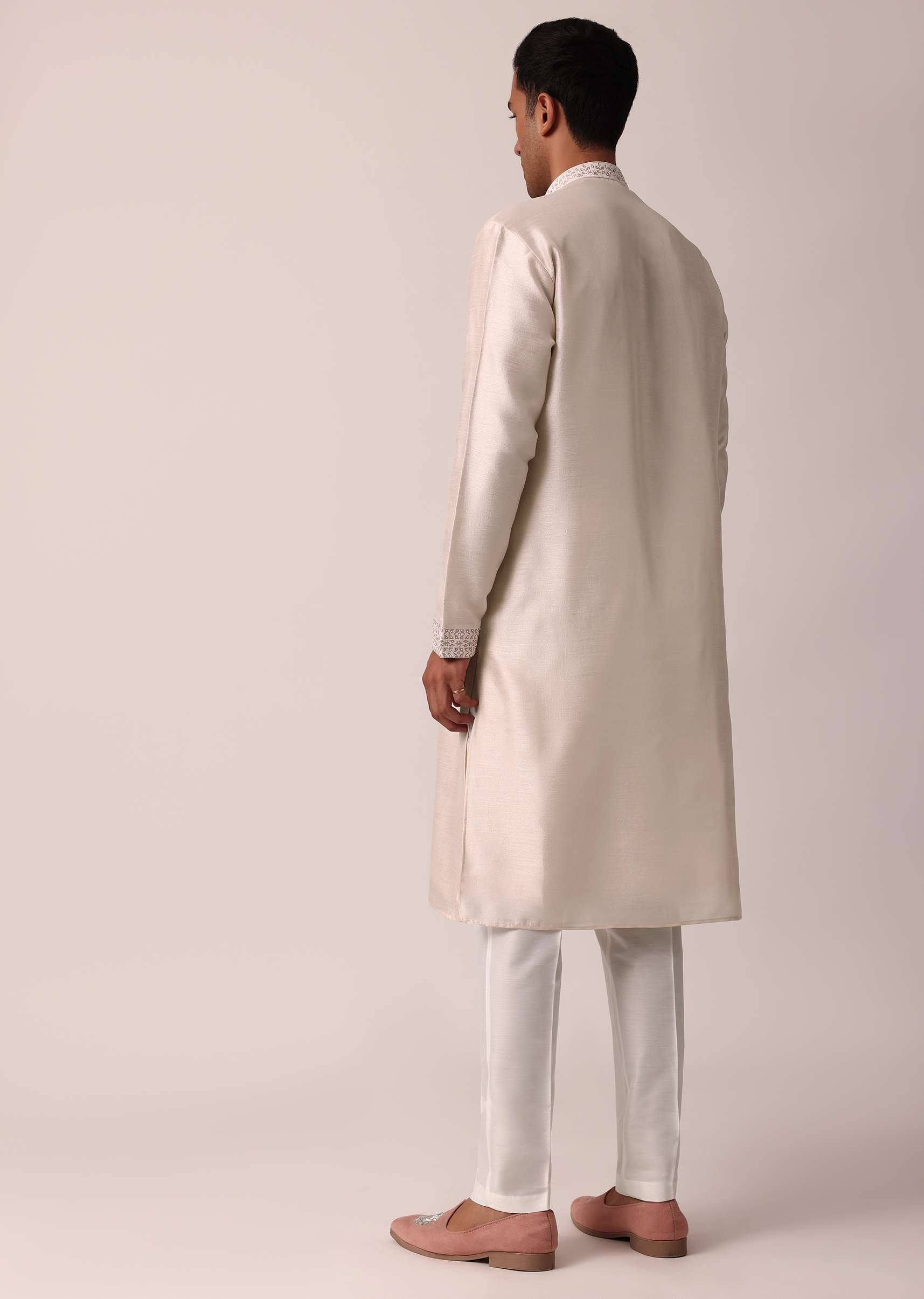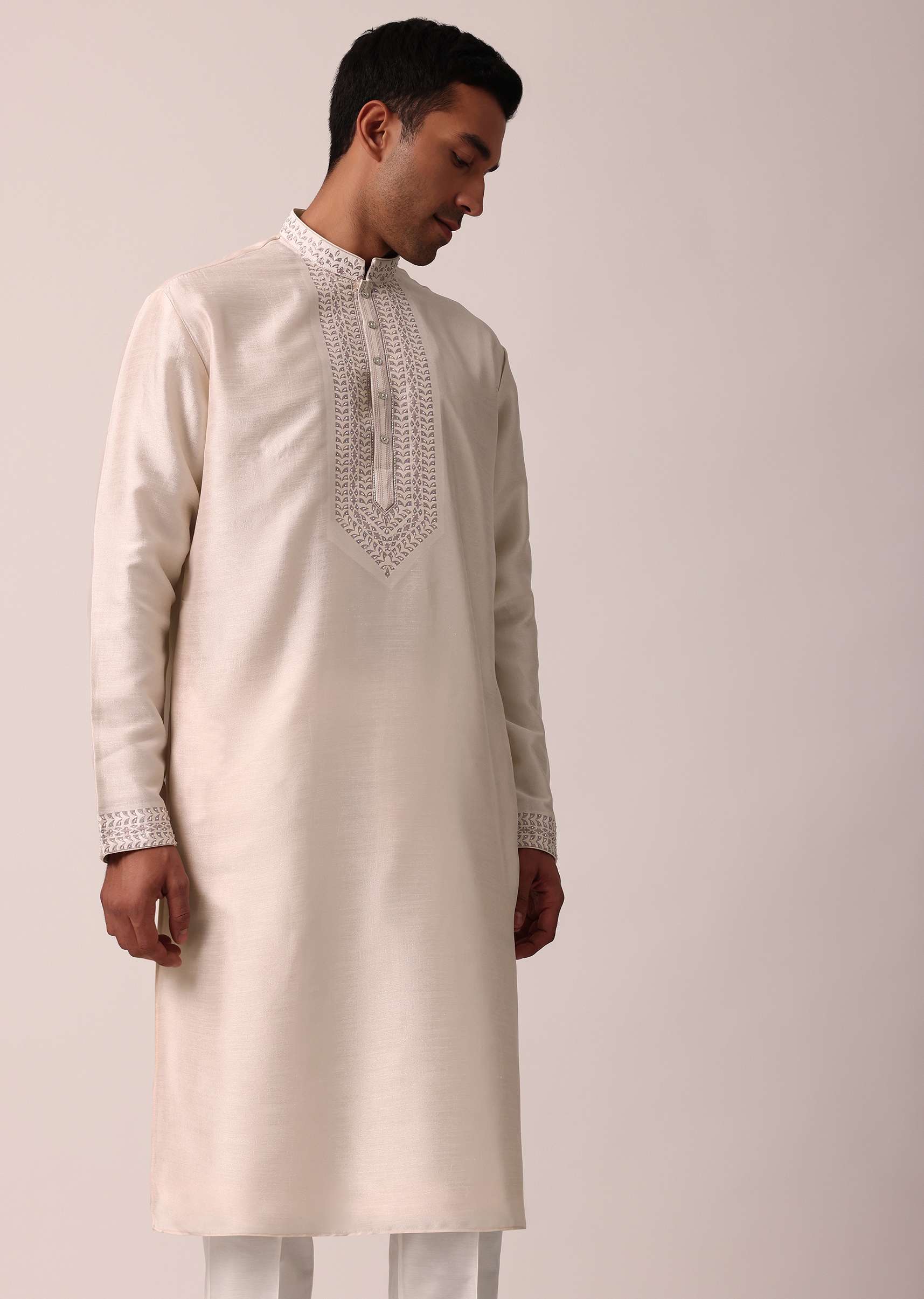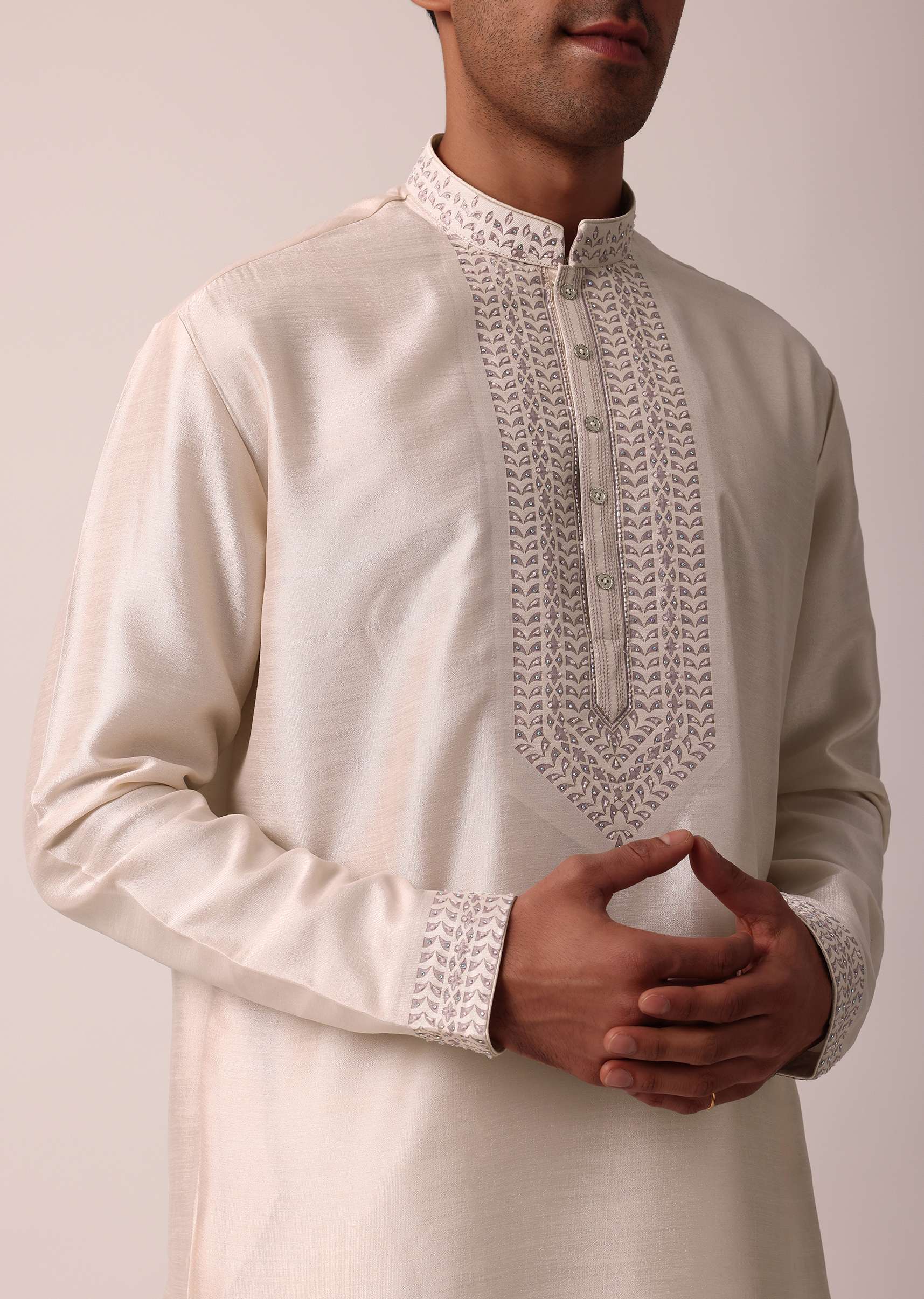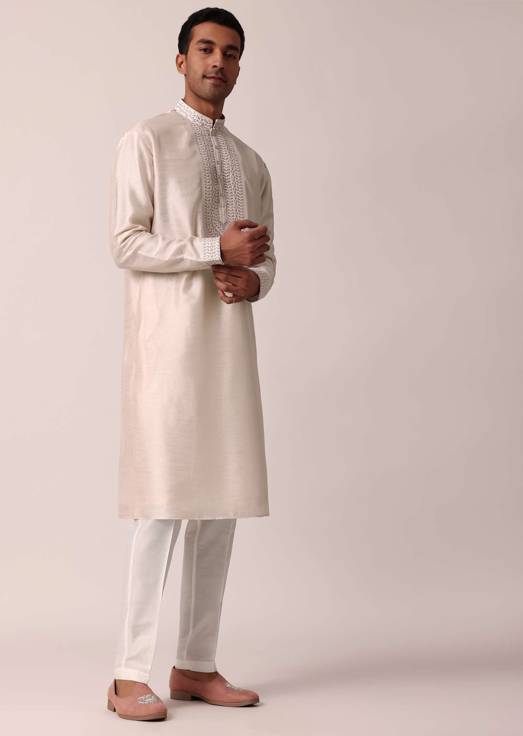 Pair this kurta set with contrasting churidar bottoms or classic dhoti pants for a contemporary and stylish ensemble.