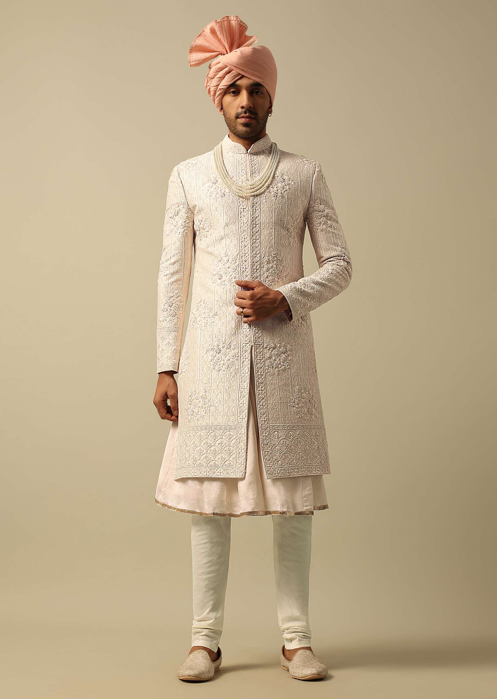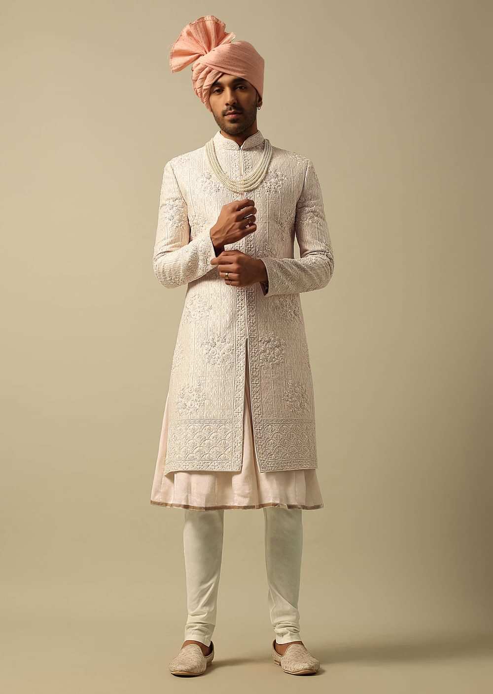 Style Tips: Elevate your wedding look by accessorizing this sherwani with a contrasting dupatta and traditional juttis.