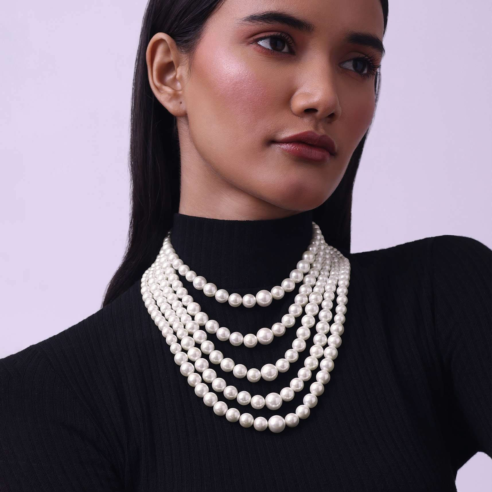 Whether it's a saree lehenga or salwar kameez the cascading layers of pearls will add a touch of sophistication and grace to your ensemble.