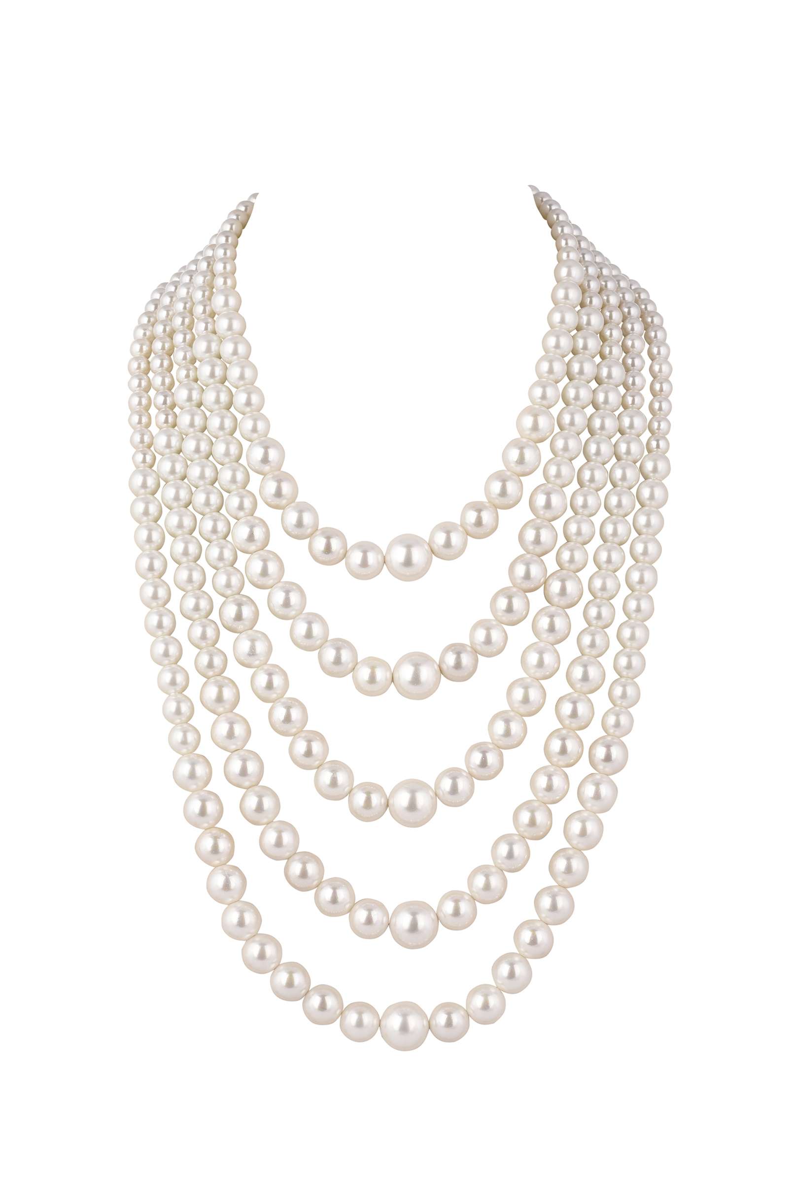 This exquisite mother-of-pearl mala with five layers will enhance your jewelry collection. Crafted with meticulous attention to detail this exquisite piece features five layers of lustrous pearls creating a mesmerizing... More Product Details