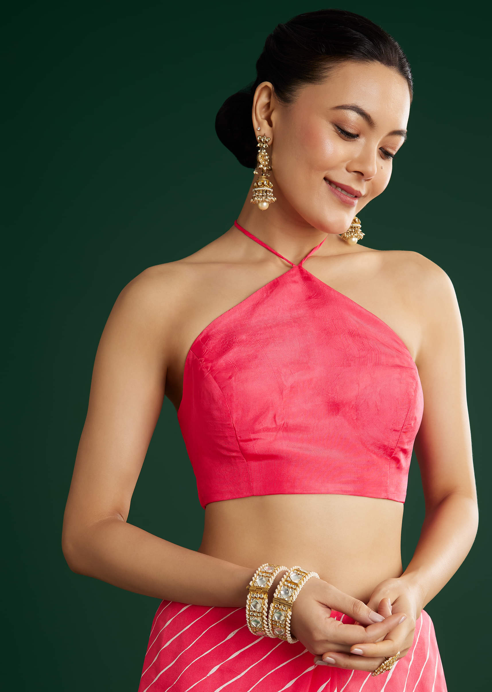 Fit Tips:Ensure the halter blouse is well-fitted at the bust and shoulders, and use pins to keep the pallu sharp and structured.