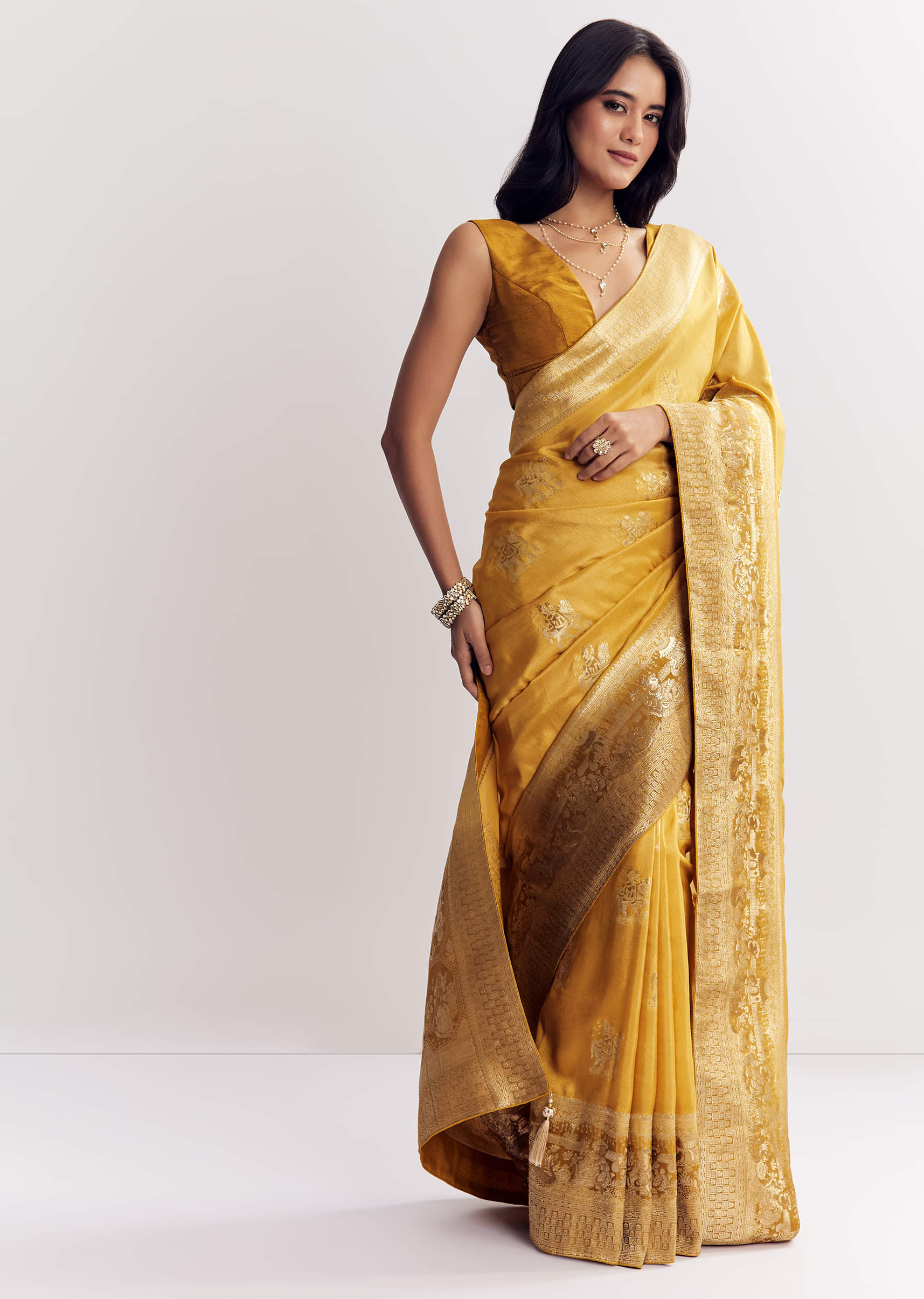 Ethereal and breezy, this georgette saree is woven with butti patterns all over—effortlessly charming for light celebrations. Blouse design may vary. Awarded as the Most Trusted Brand, we're delivering styles... More Product Details