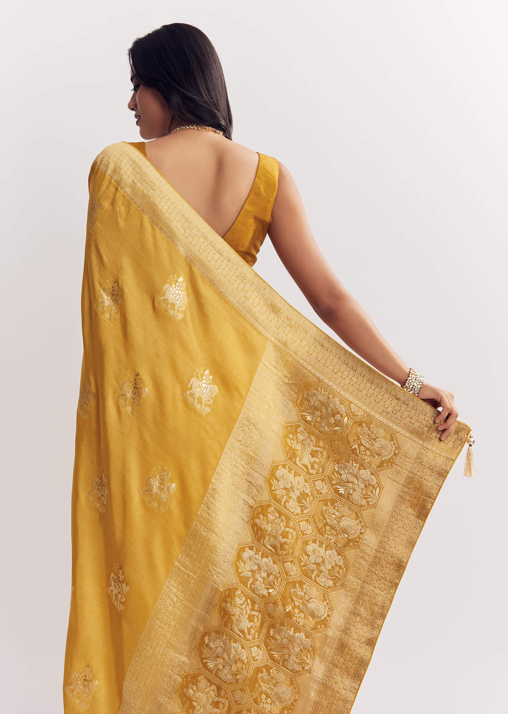 Ethereal and breezy, this georgette saree is woven with butti patterns all over—effortlessly charming for light celebrations. Blouse design may vary. Awarded as the Most Trusted Brand, we're delivering styles you love, just as promised.
