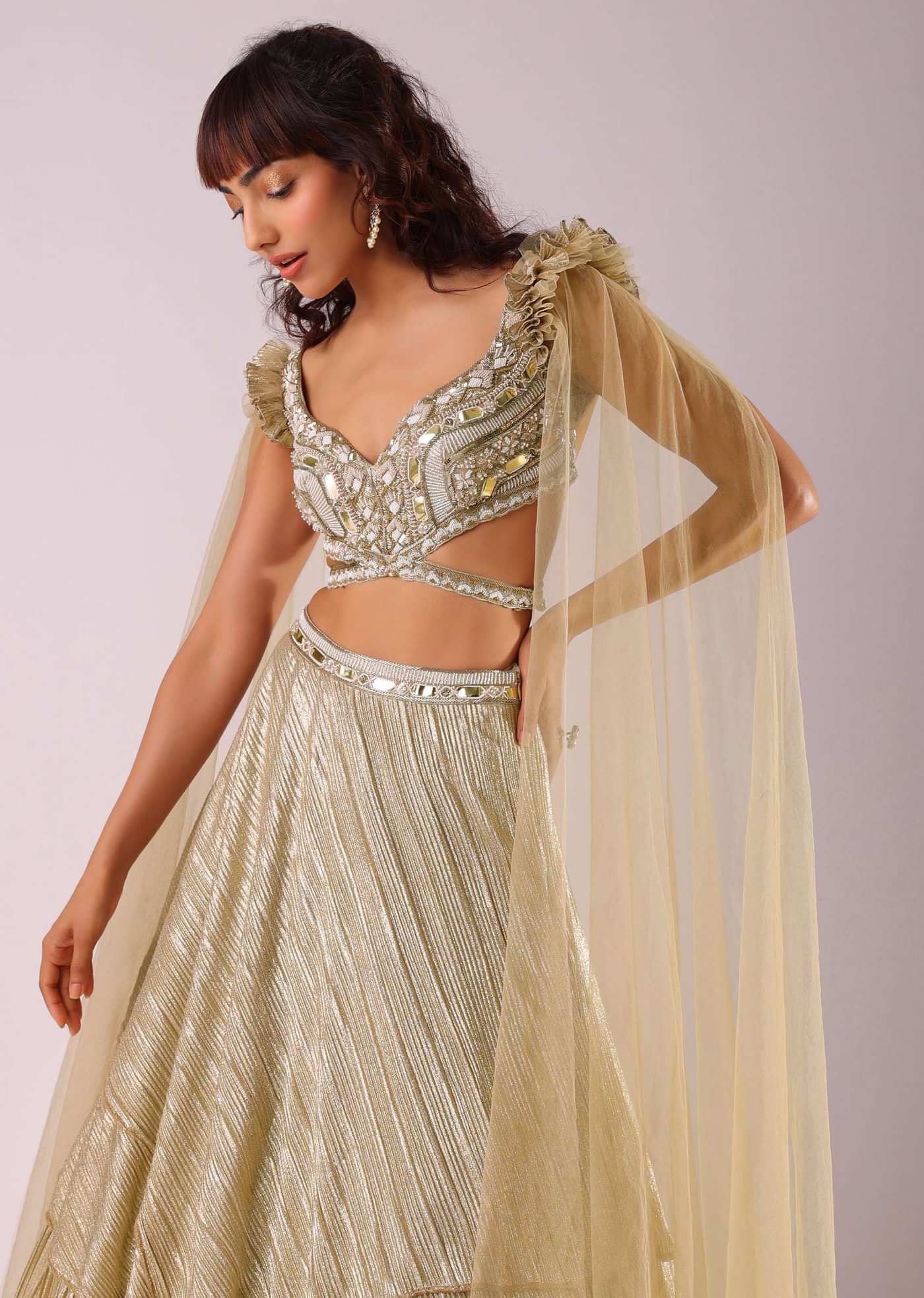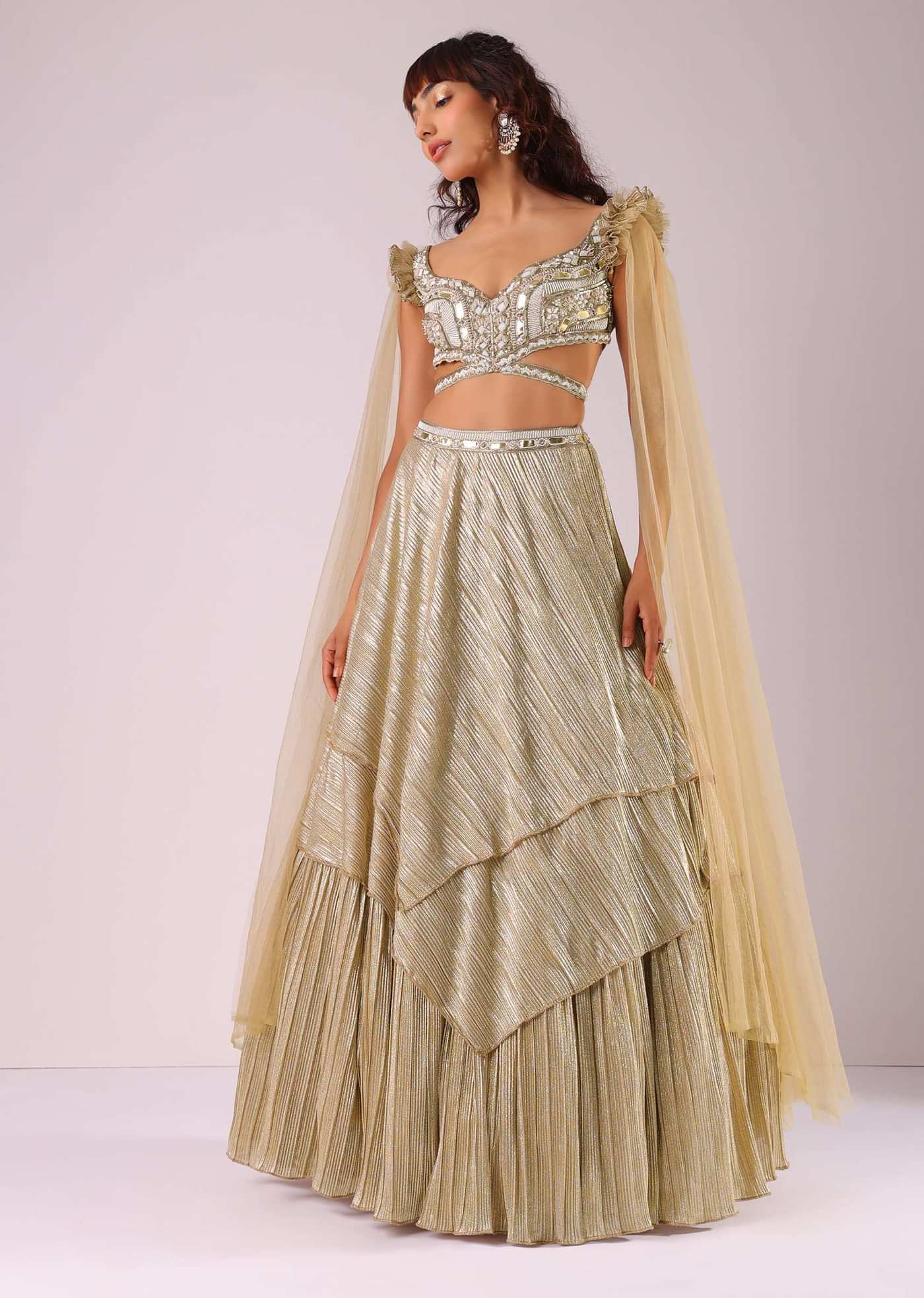 Glam Gold Lehenga Set In Foil Knit Fabric With Embroidered Blouse