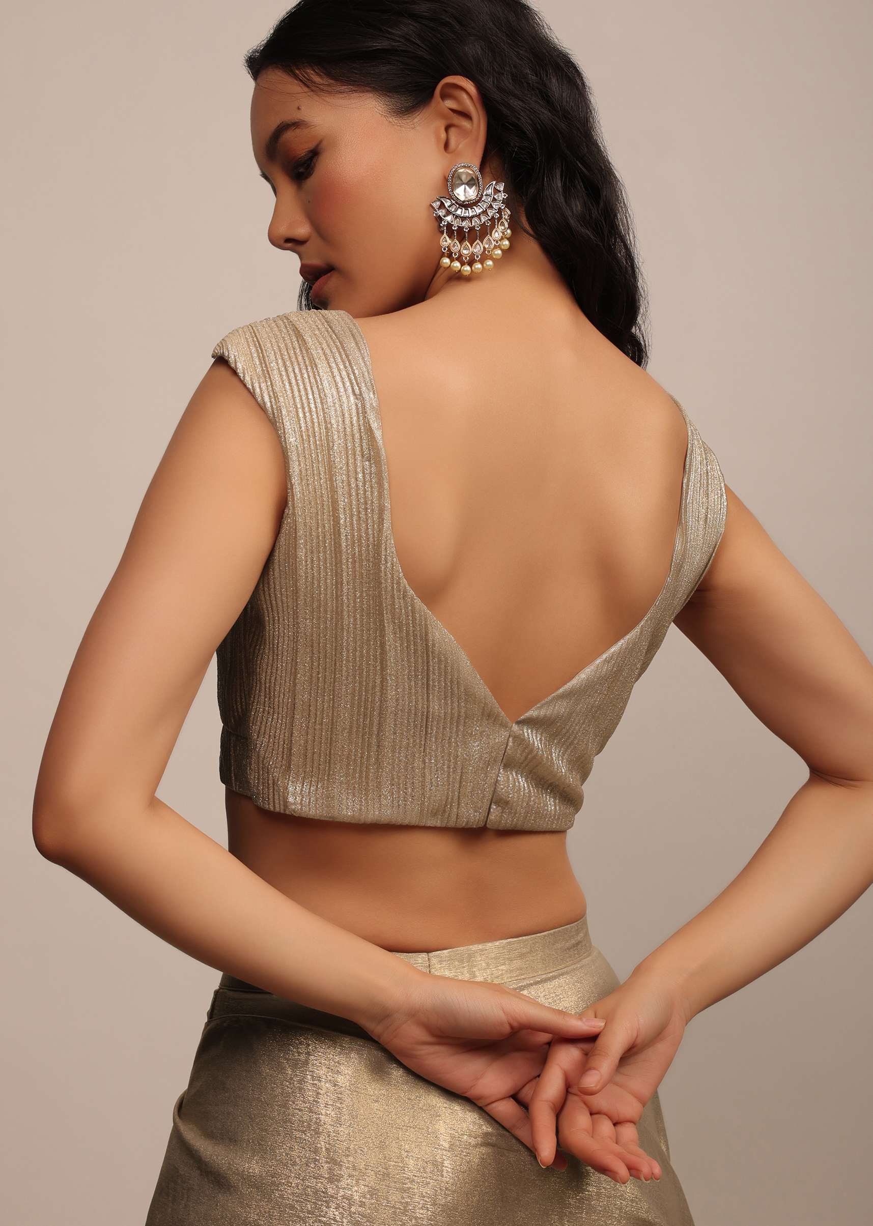 Introducing our glittery gold blouse, the perfect statement piece for any festive occasion.The blouse features a sweetheart neckline that accentuates your neckline and collarbone, and it comes with cap sleeves, which makes it perfect for layering under your favorite saree.The blouse also comes with a back hook closure, making it easy to put on and take off, and ensuring a secure and comfortable fit. Plus, the blouse is padded, providing the support you need for a confident and flattering look.The garment should be kept in Soft Muslin fabric. Do not spray perfume directly on the garment. Kindly keep the garment in a moderate climate as some of the embroidery material tends to react with the weather change. Awarded as the Most Trusted Brand, we're delivering styles you love, just as promised.