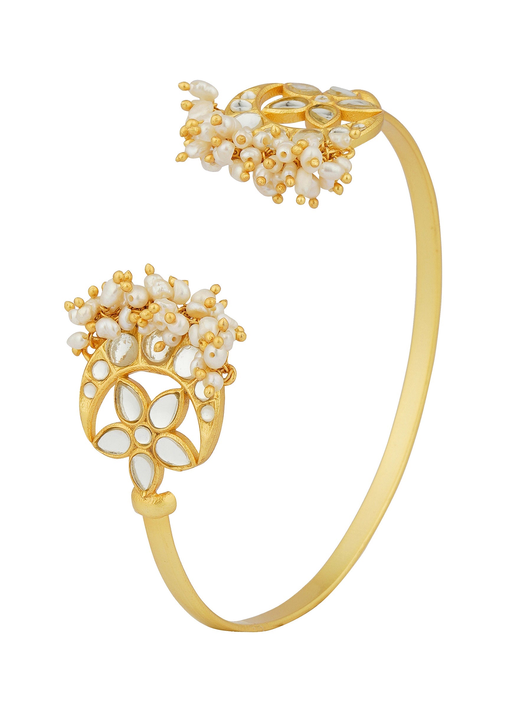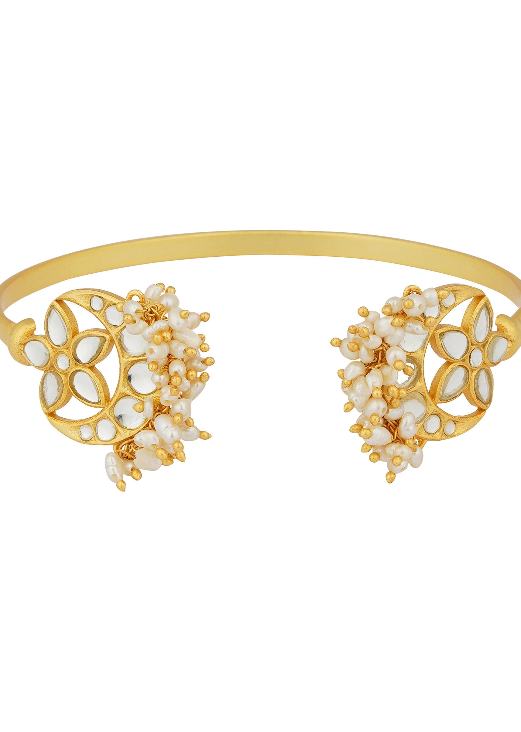 Celebrate Timeless Elegance With This Stunning Gold Chaand Phool Bracelet Perfect For Parties And Festive Occasions. Adorned With Intricate Mirror Polki Details And Delicate Pearl Clusters It Seamlessly Combines Traditional Craftsmanship With Contemporary Style. Crafted In Mix Metal This Bracelet Is Lightweight And Versatile Making It A Beautiful Addition To Your Jewellery Collection For Any Celebratory Event.Awarded As The Most Trusted Brand We'Re Delivering Styles You Love Just As Promised.