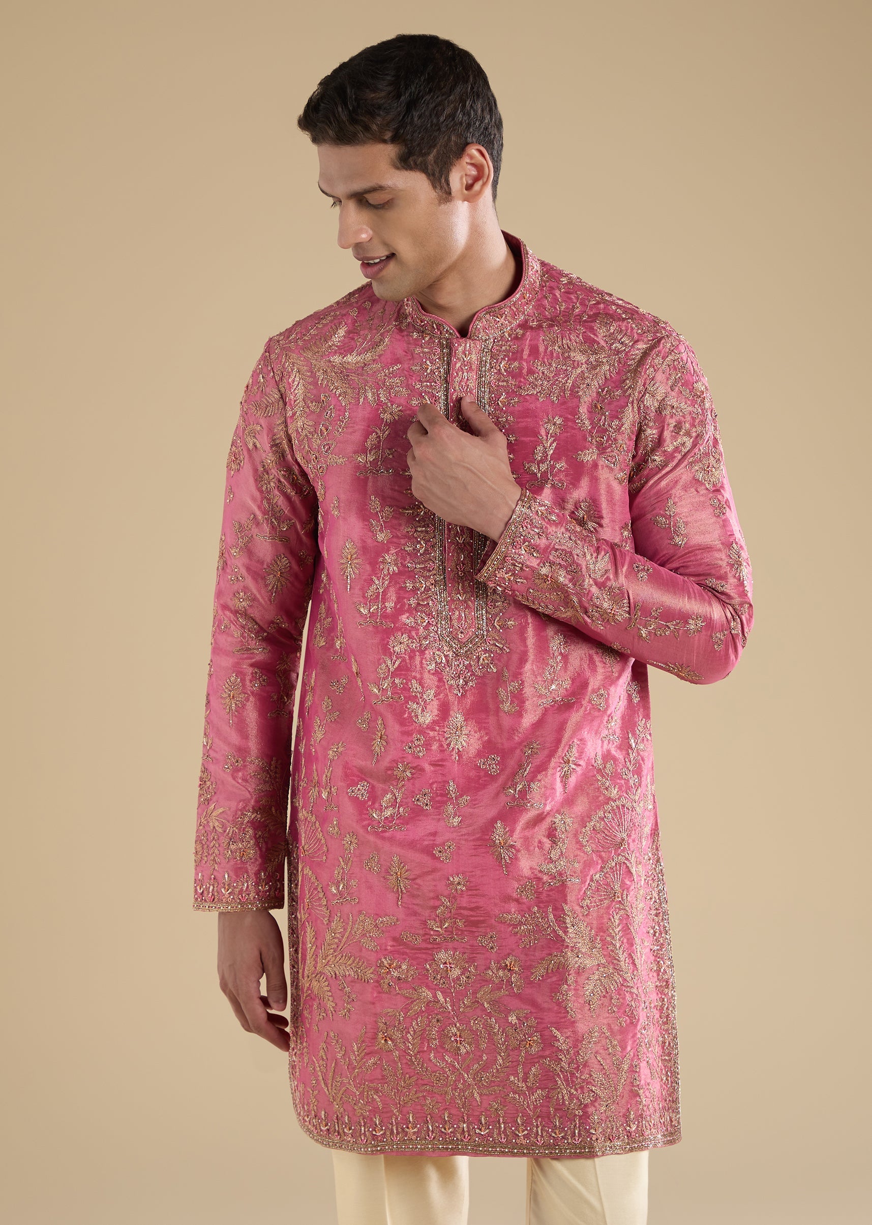 Pair with tan mojris for a rich festive finish.