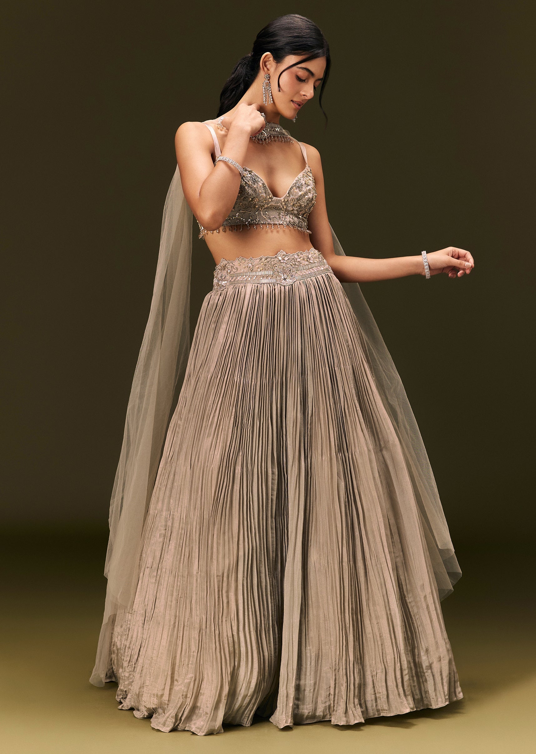 Every inch of this lehenga set in organza tissue is crafted with intent—from the sweetheart neckline blouse sparkling with moti and sequins to the regal choker dupatta that crowns the look. It’s an heirloom fantasy made for modern royalty. Awarded as the Most Trusted Brand, we're delivering styles you love, just as promised.