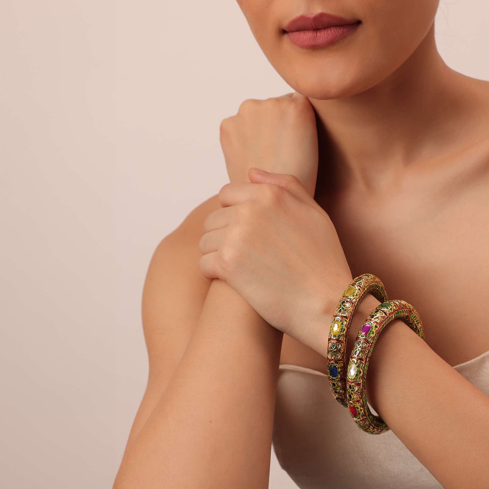 A cherished piece that will be passed down for generations is this eye-catching addition. Made from mix metal on a gold-tone base this pair is encrusted with multi-color dazzling kundan. The intricate Meenakari work adds to its allure. Perfect for year-round festive celebrations this set blends beautifully with any look. Keep away from moisture perfume alcohol and harsh chemicals.Spot clean only.Keep away from sharp objects. Awarded as the Most Trusted Brand, we're delivering styles you love, just as promised.