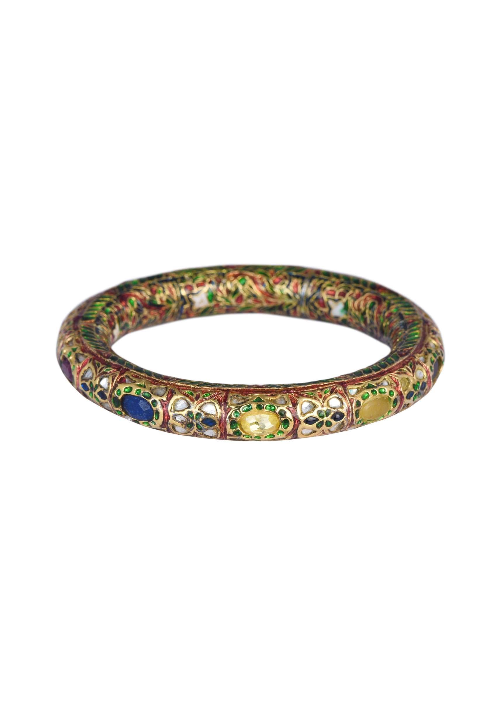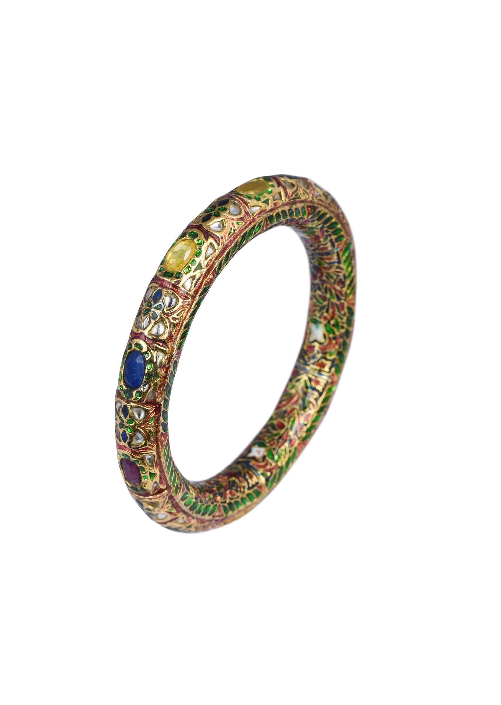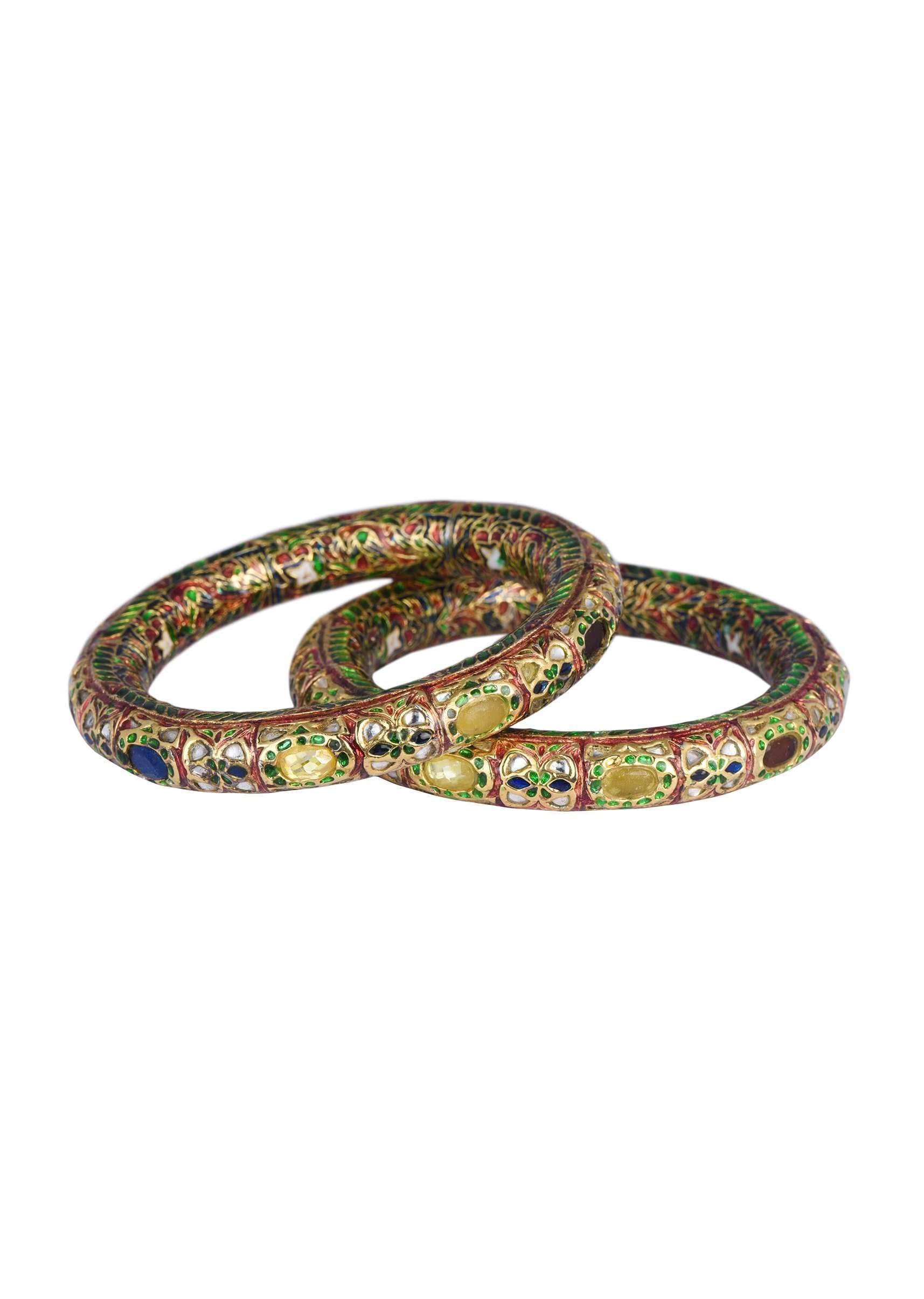 Gold Finish Bangle With Multicolor Studded Kundan And Meenakari Work Set of 2