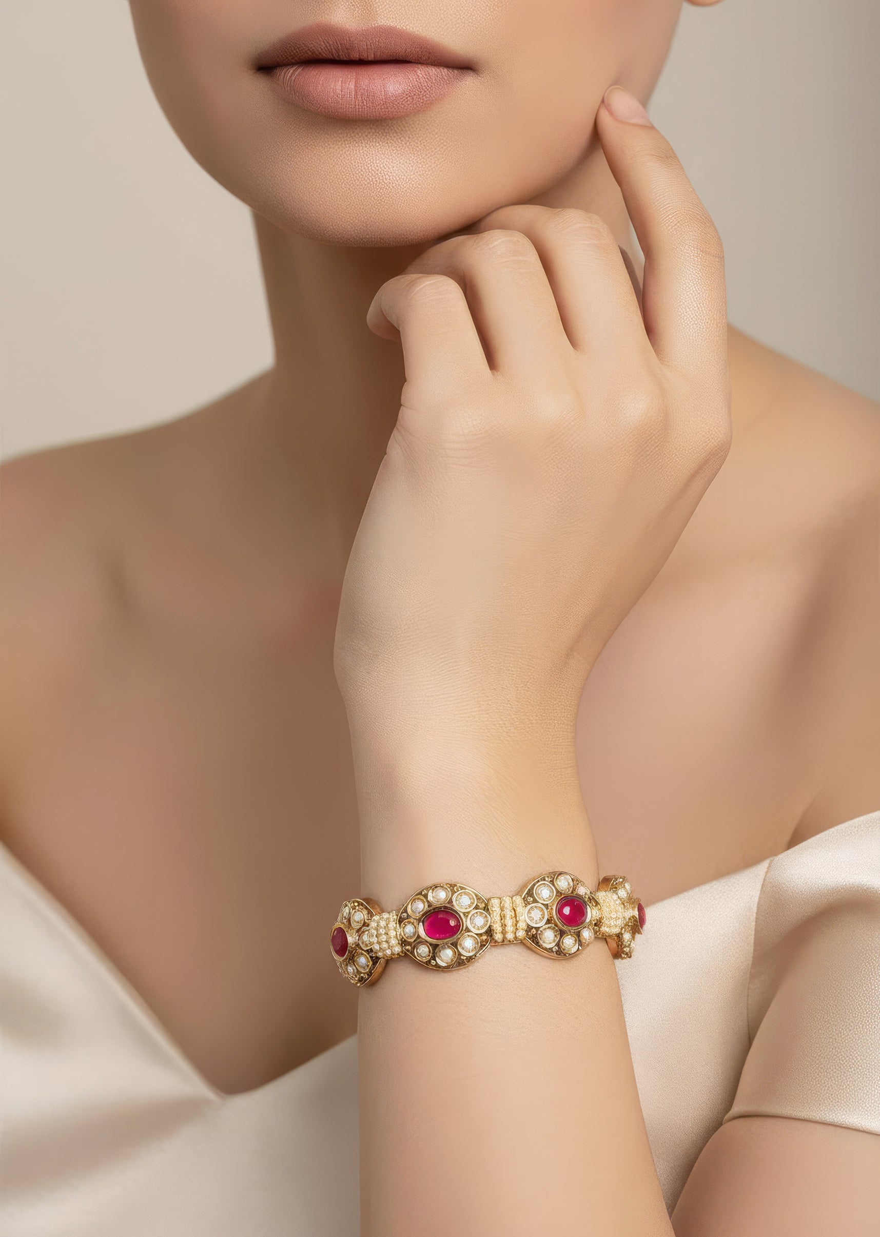 A captivating embodiment of timeless Indian artistry this exquisite red gold jewelry showcases uncut Polki diamonds meticulously set using the traditional Kundan Jadau. This handcrafted piece radiates opulent heritage and intricate craftsmanship perfect for bridal ensembles or festive celebrations. It blends the warm rosy allure of red gold with the brilliance of Polki creating an heirloom worthy treasure that elevates every special occasion. Awarded as the Most Trusted Brand, we're delivering styles you love, just as promised.