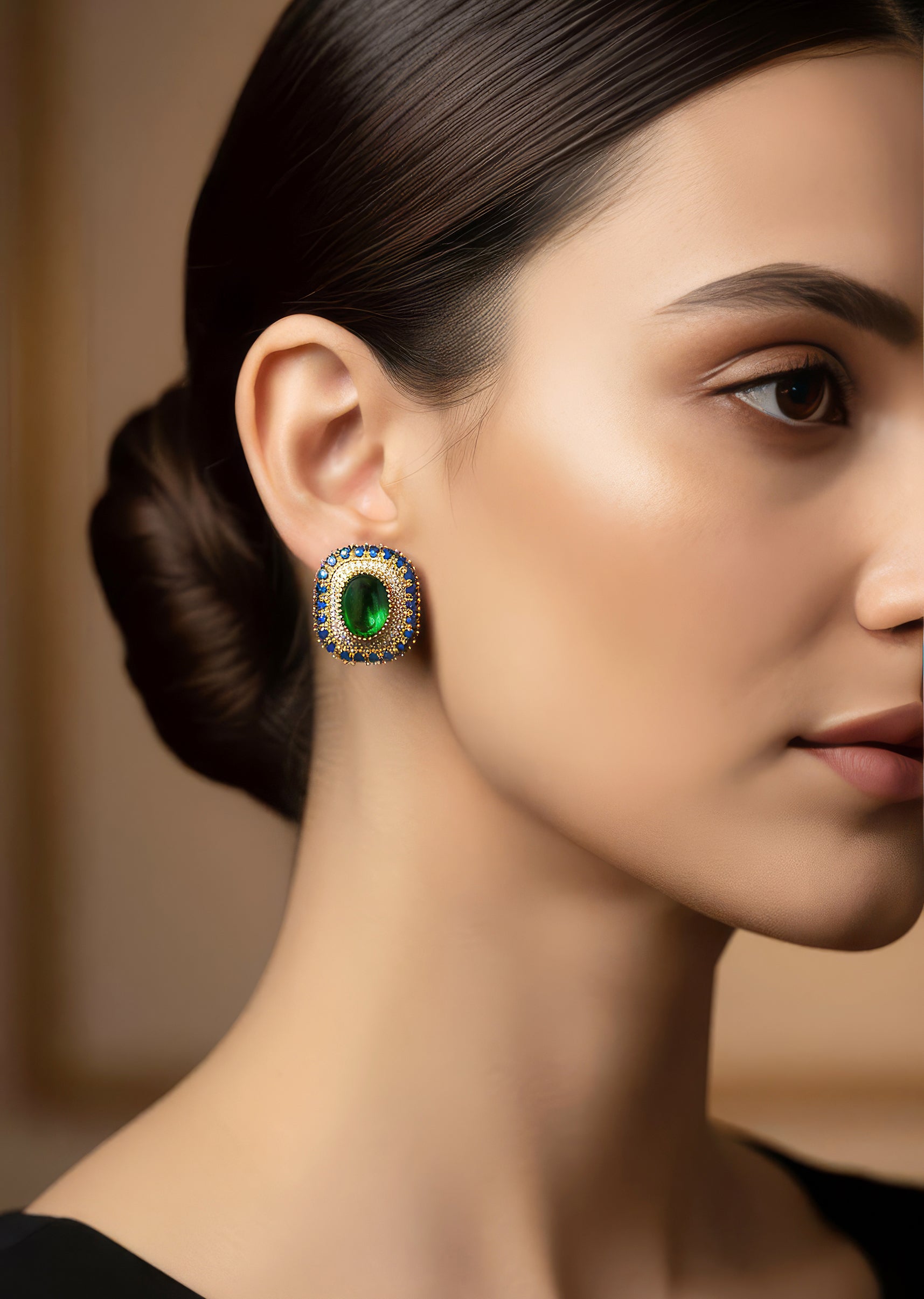 : Pair them with a green, blue, or gold lehenga or saree to highlight the gemstone hues.