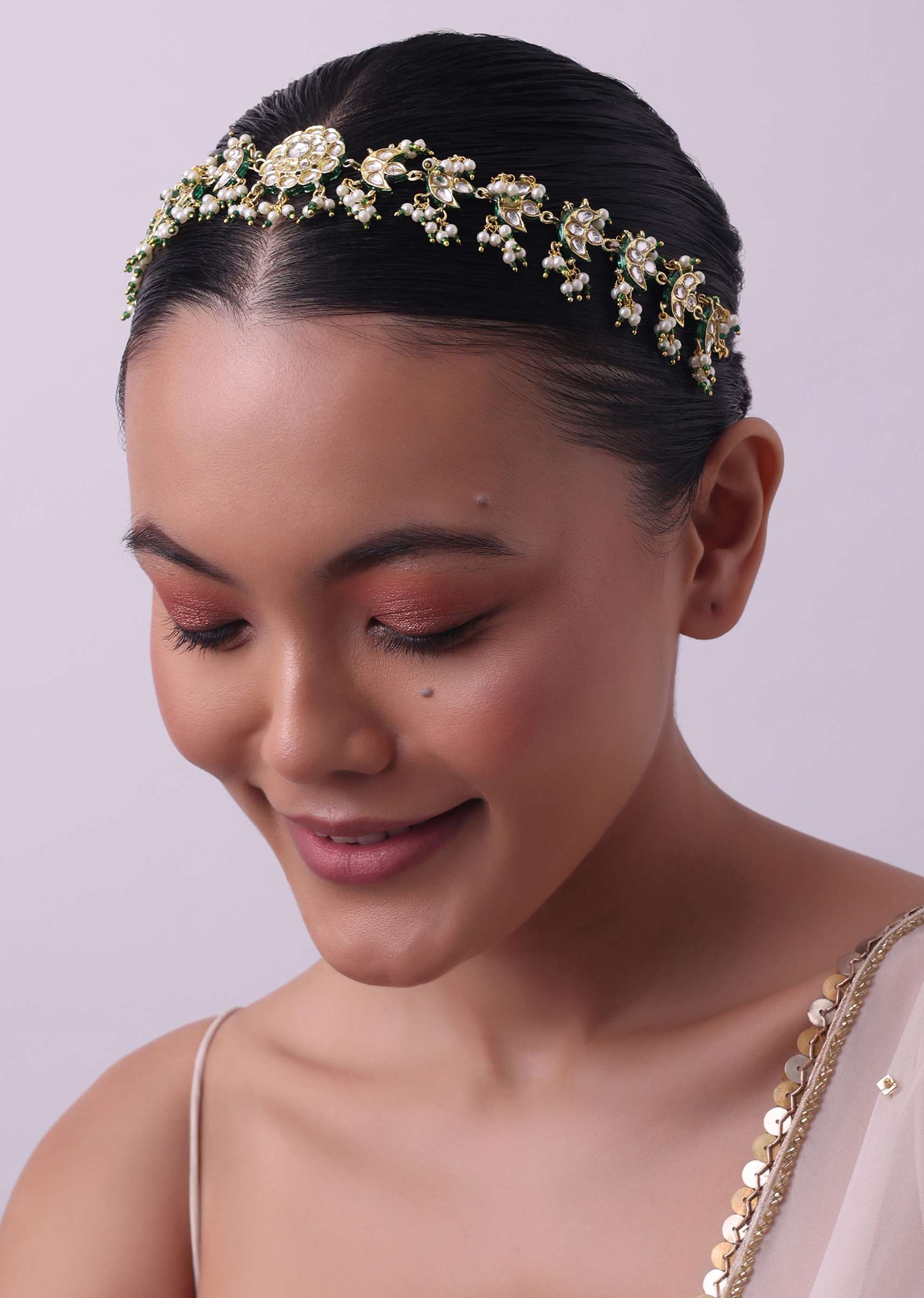 Gold Finish Green Kundan Mathapatti In Mix Metal