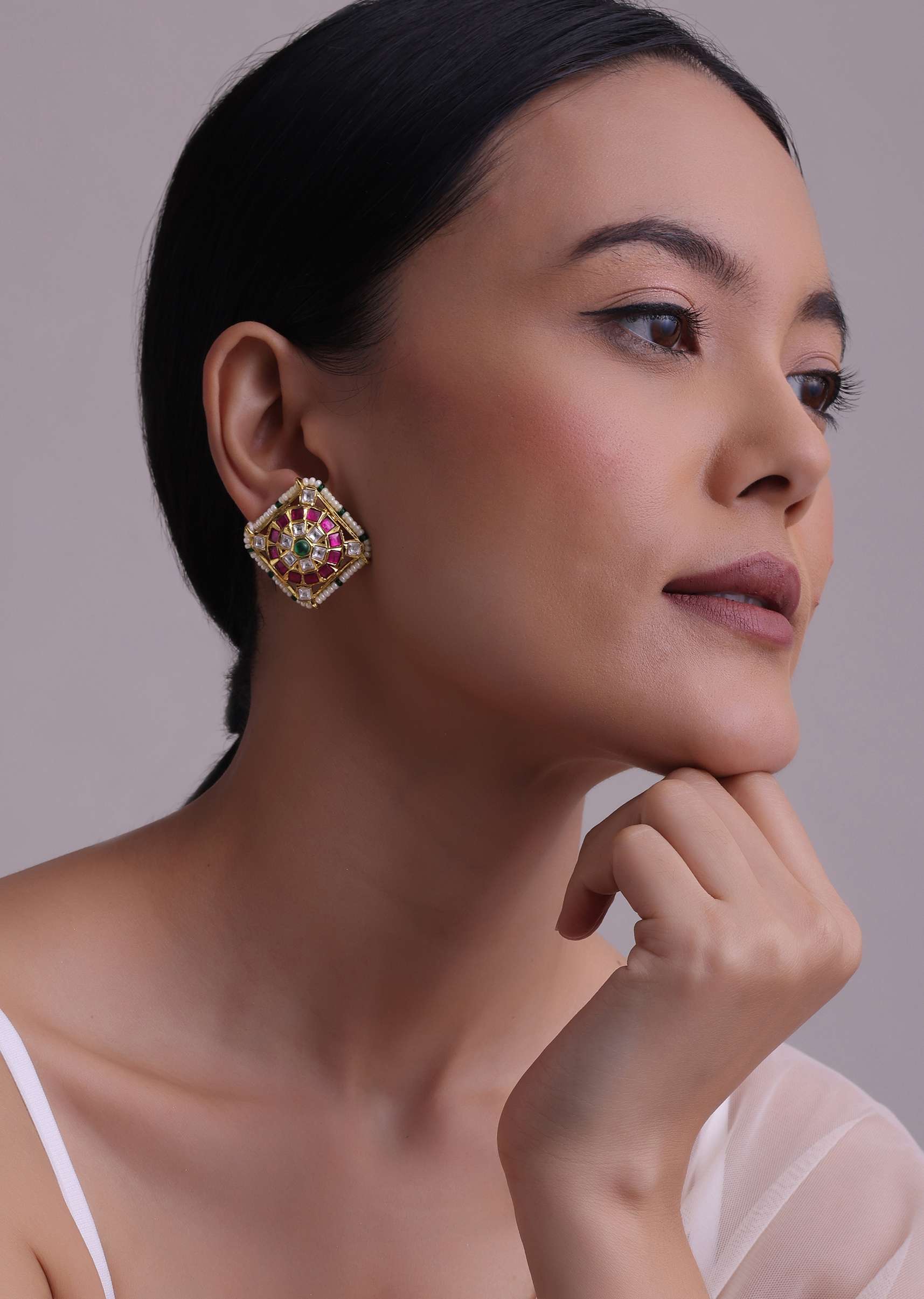 Keep your hair sleek and away from your face to showcase the earrings, and finish the look with a swipe of bold lipstick in a matching or complementary shade.