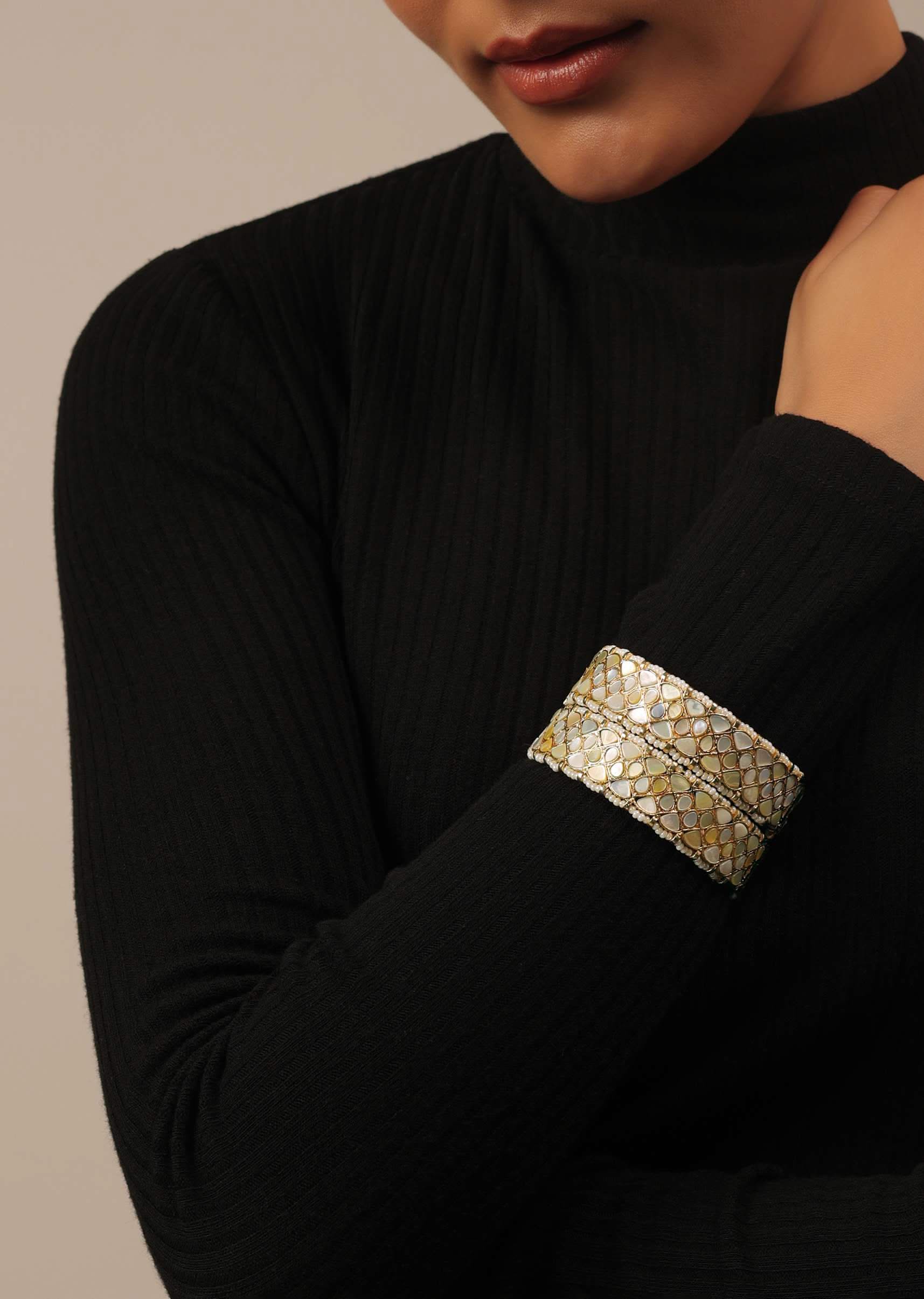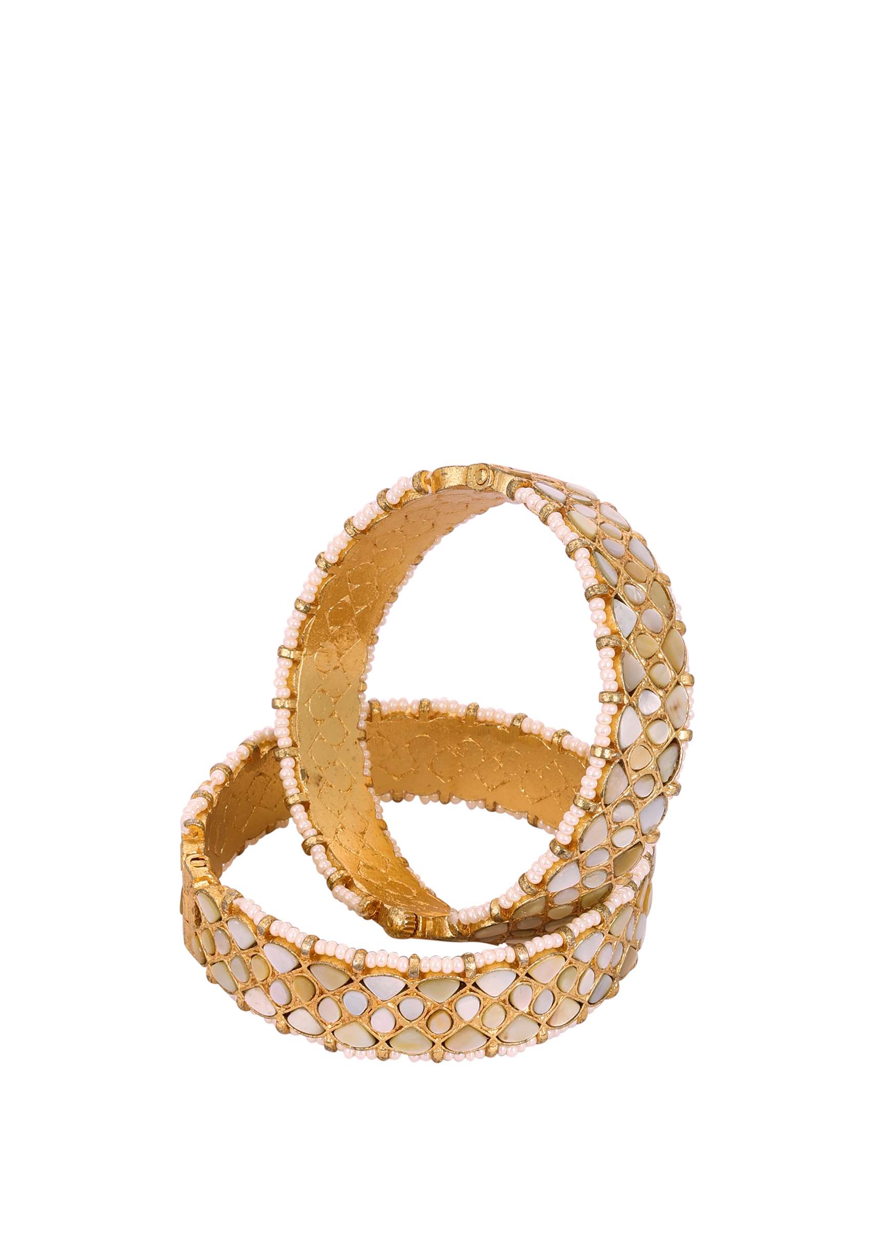 Gold Finish Jadau Kundan Kadas With Synthetic Stones And Beads