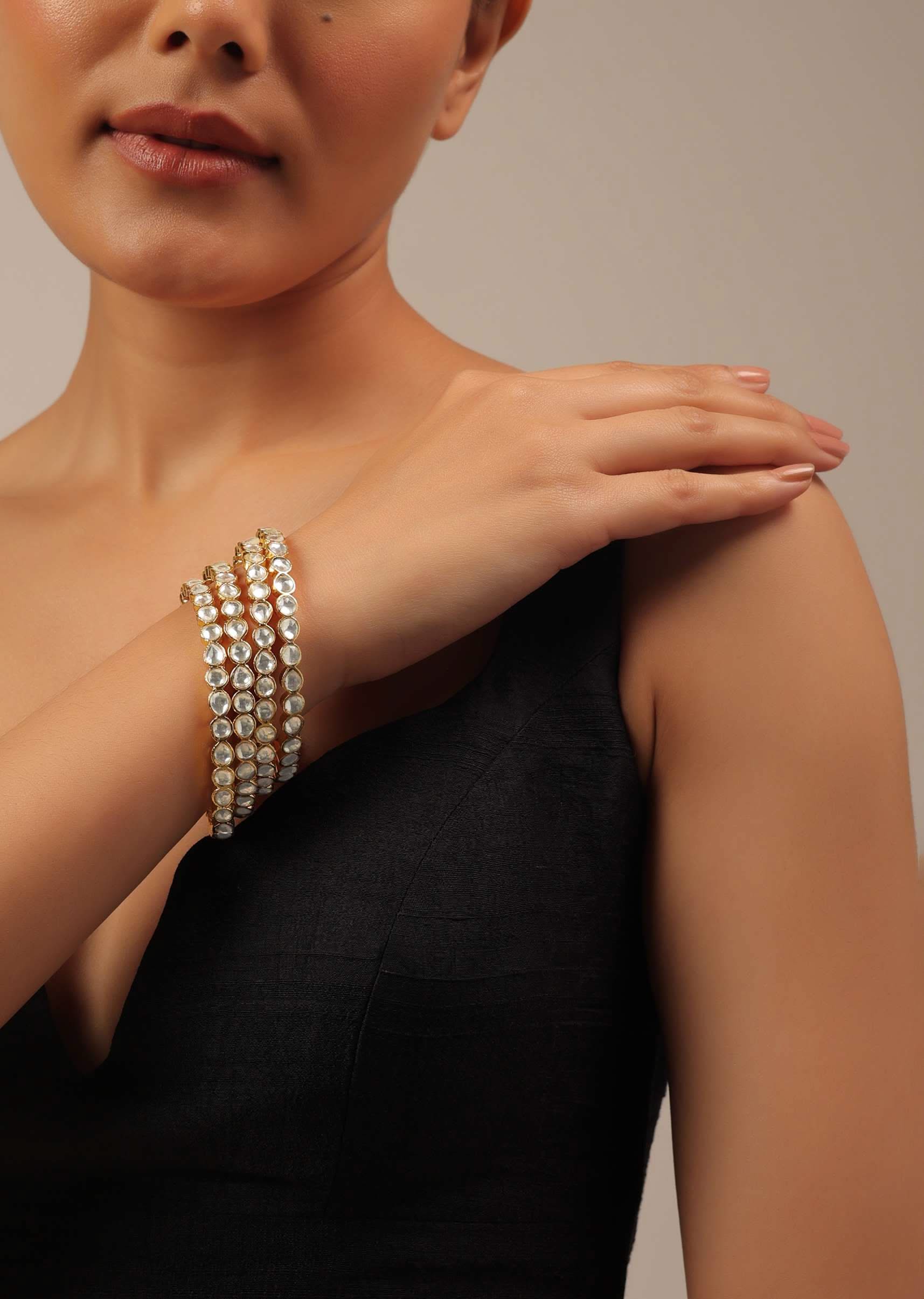 These kundan polki bangles are beautiful traditional pieces of Indian jewelry that add a touch of elegance and sophistication to any outfit. They are sure to be a treasured addition... More Product Details