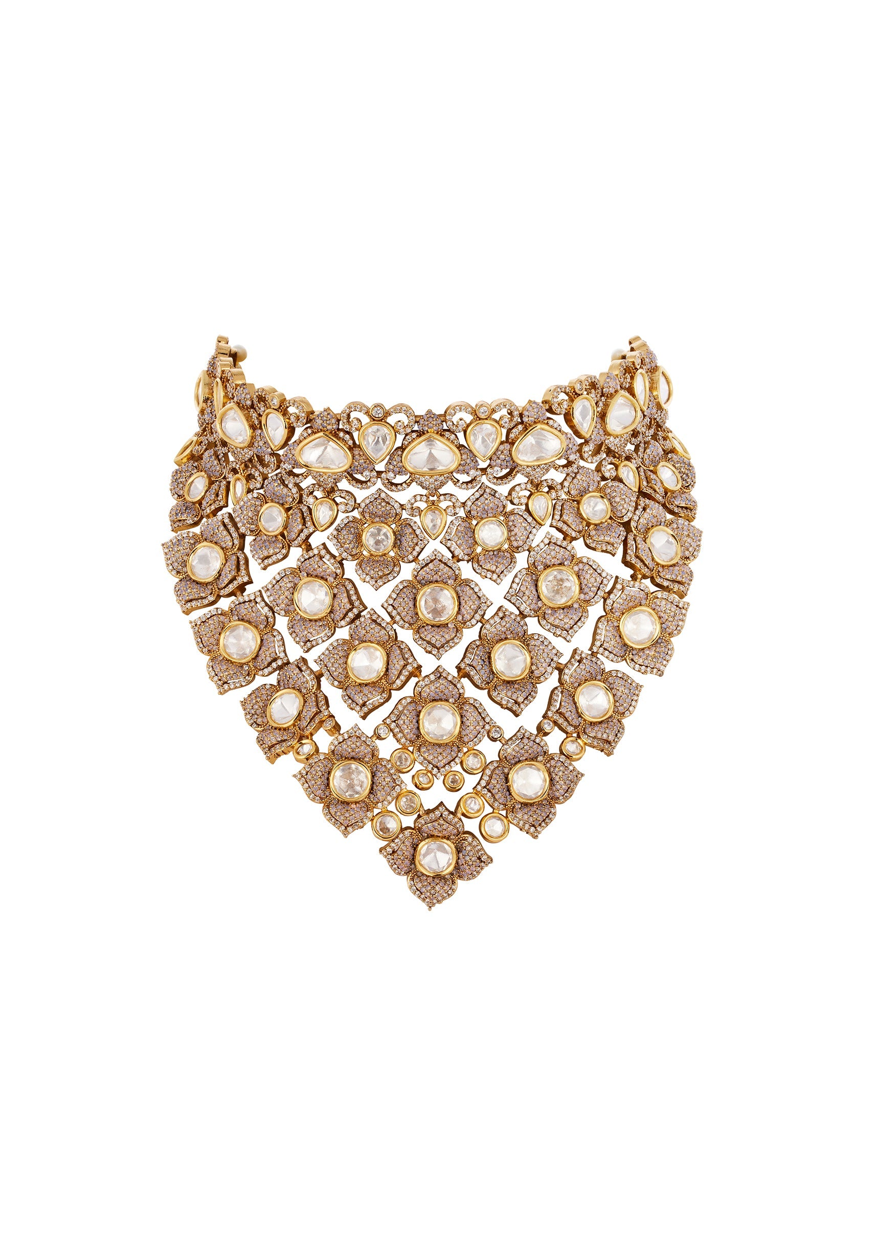 Pair it with a richly embroidered lehenga or saree to highlight the intricate Polki and gemstone detailing.