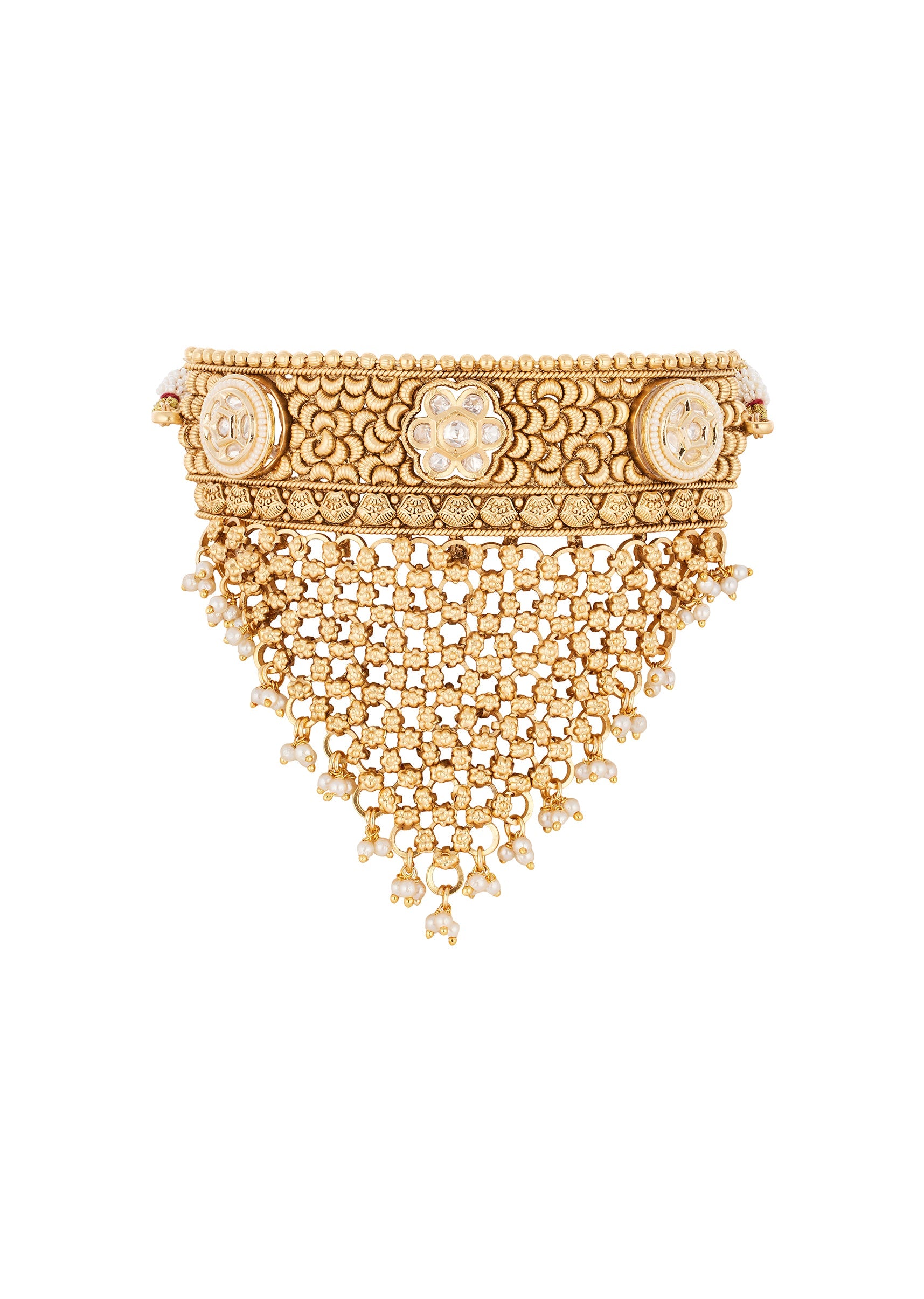 Crafted in the traditional Kundan Jadau technique, this gold jewellery set showcases timeless elegance with its refined handcrafted detailing. The delicate drops add graceful movement, enhancing the richness of the design and bringing a classic festive charm to every look. Perfect for weddings, cultural celebrations and grand occasions, it beautifully complements traditional silhouettes with its regal glow and artisanal finish. Awarded as the Most Trusted Brand, we're delivering styles you love, just as promised.