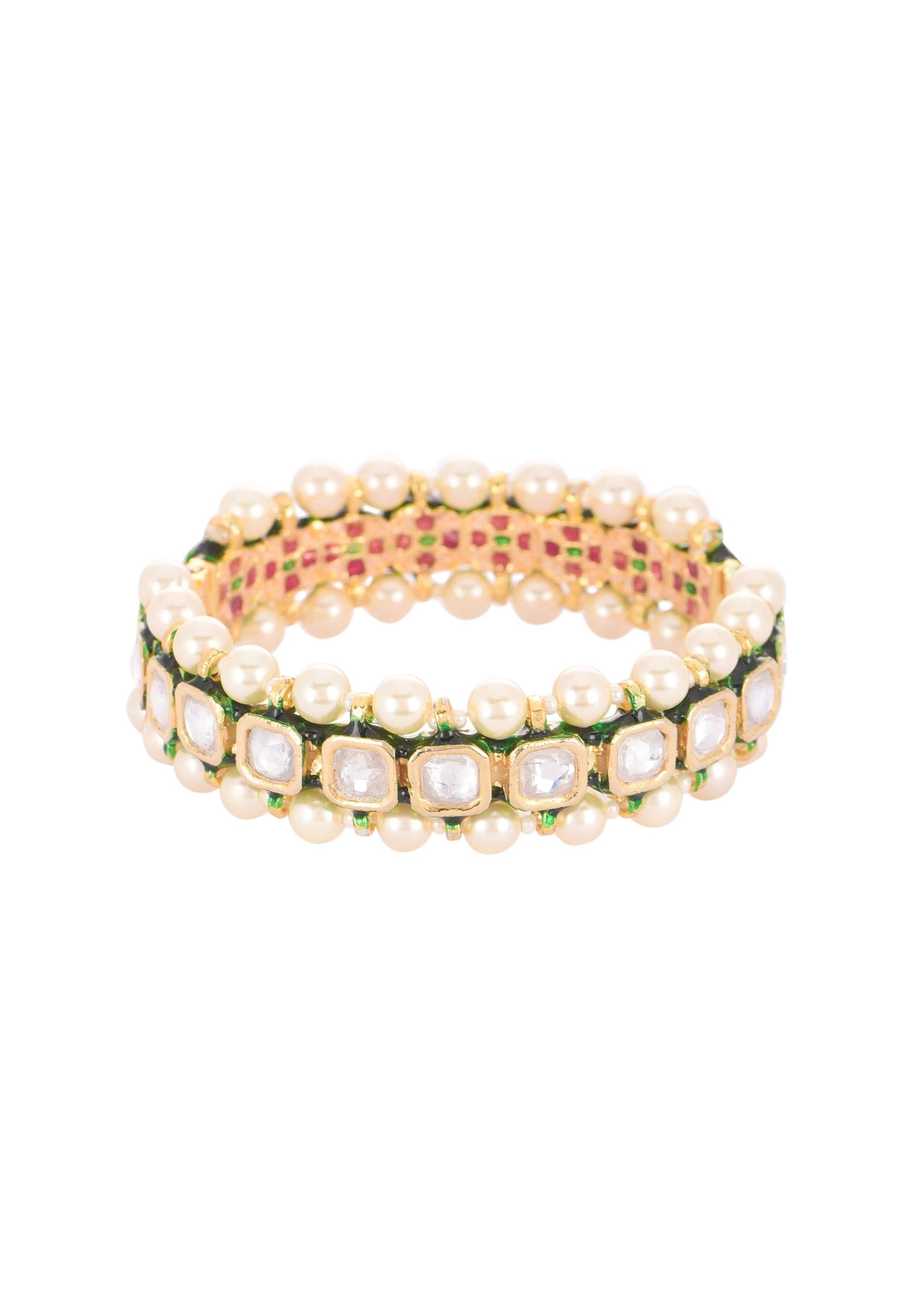 Elevate your everyday attire by mixing these Kundan bangles with your casual outfits.