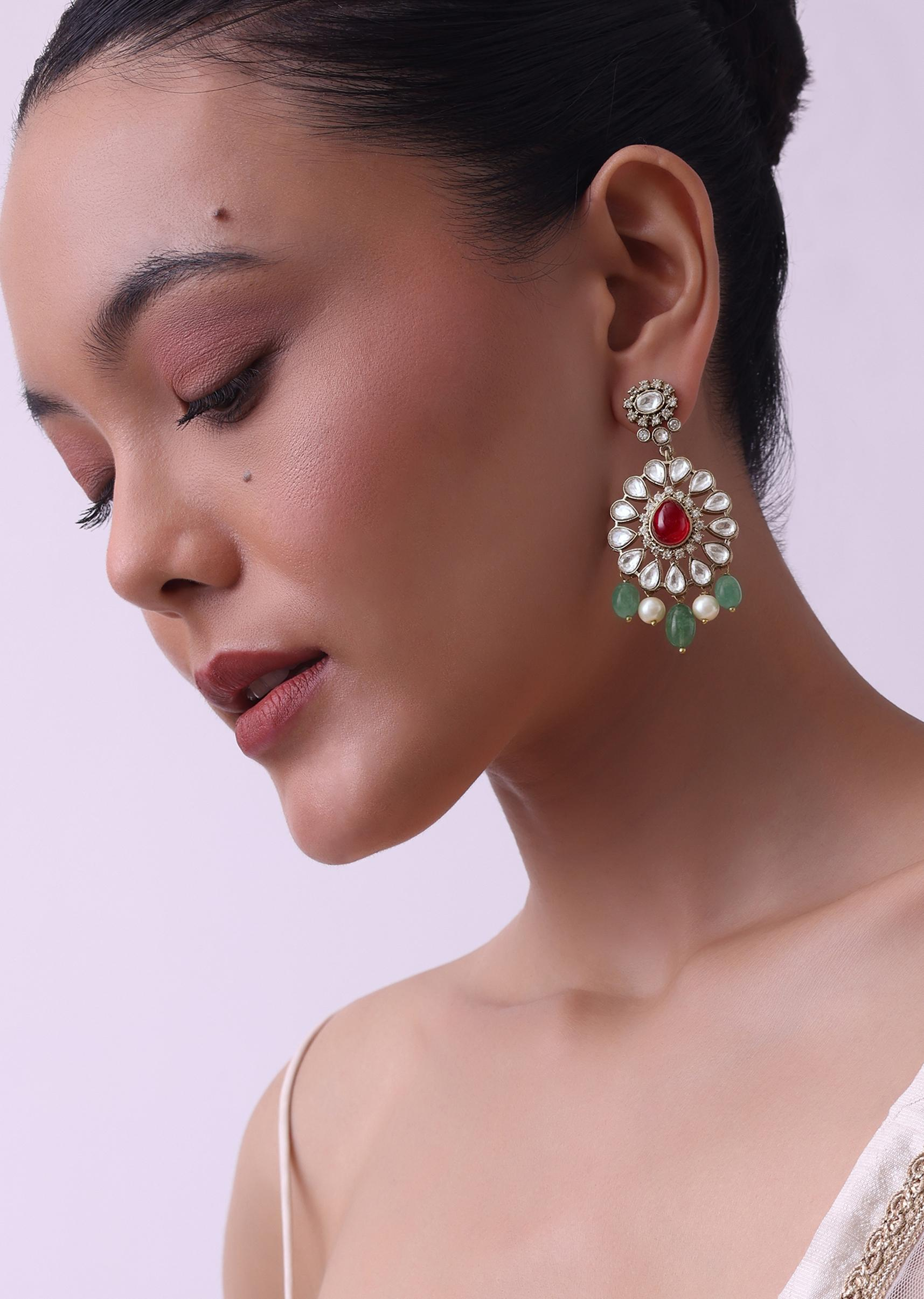 Crafted with meticulous attention to detail, this choker and earring set features intricate kundan moissanite polki work, which adds a regal charm to the design. The synthetic ruby and emerald stones beautifully complement the gold finish. EVENT - Perfect for festive and formal events. Avoid contact with water, chemicals, harsh liquids, perfumes, etc. Do not wear this piece of jewelry while showering, gym, swimming, etc. Please keep the product away from moisture and humidity when not in use. Slight variations in design may vary. Being rewarded as the most trusted brand, our customers believe we deliver the same styles as promised on the website. Awarded As The Most Trusted Brand We'Re Delivering Styles You Love Just As Promised.