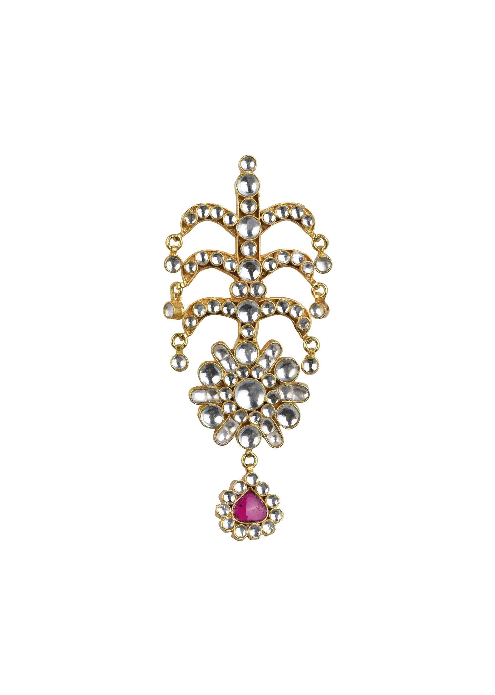 Add a touch of regal elegance to your hairstyle with this exquisite gold finish Kundan hairpin. Crafted with intricate detailing this hairpin is adorned with beautiful synthetic stones. EVENT -... More Product Details